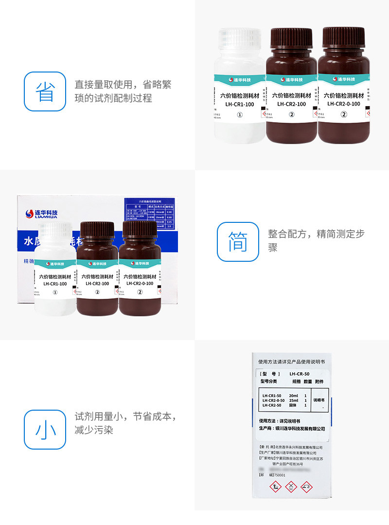 连华科技 六价铬试剂重金属检测药剂耗材 LH-CR-100 100次 1盒