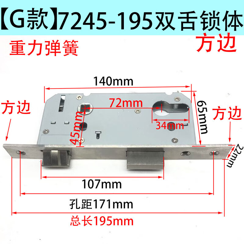 国产通用 房门锁体 7245-195双舌锁体方边 1个