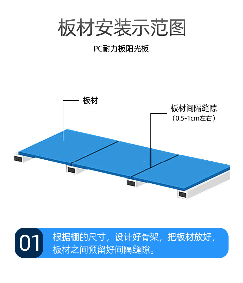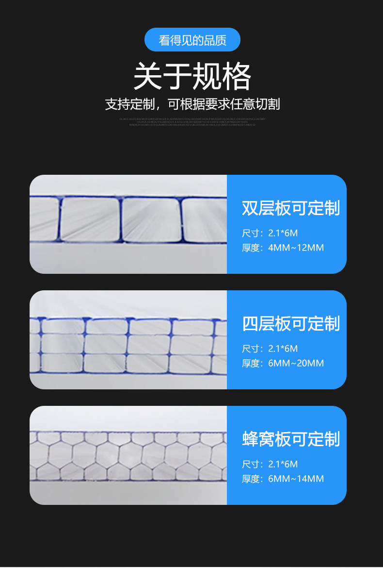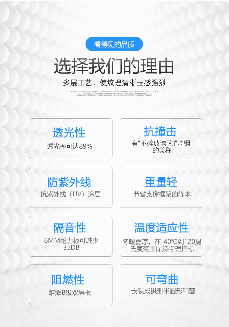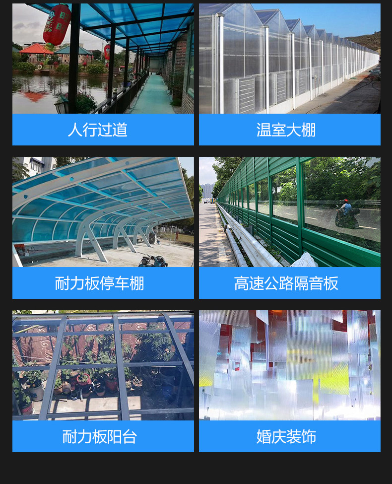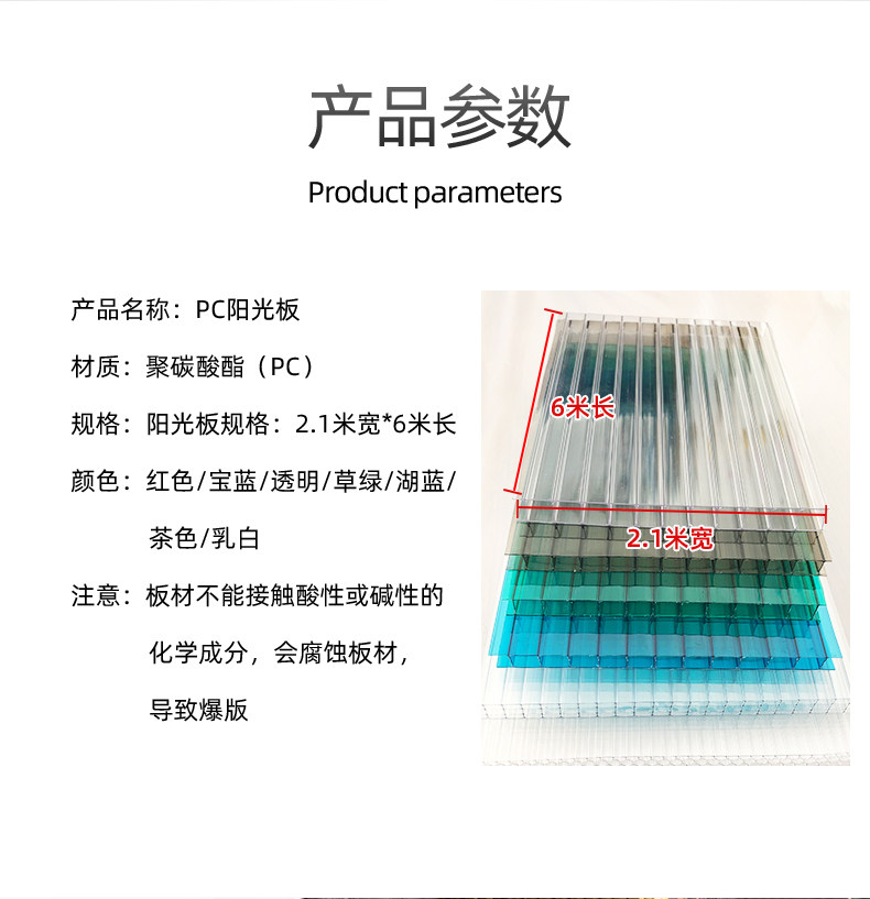 国产通用 隔热阳光板 PC材质 6000*2100*8mm 湖蓝色 1张