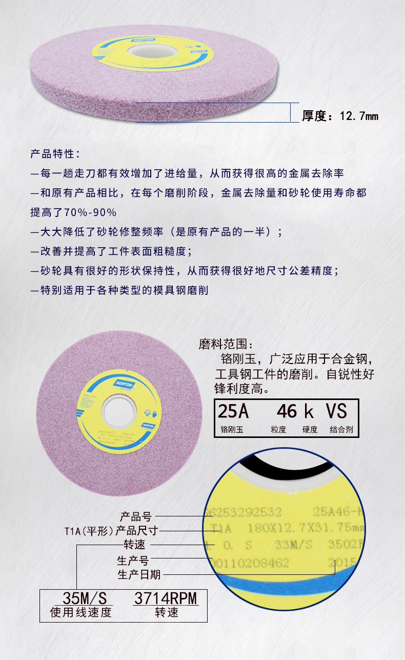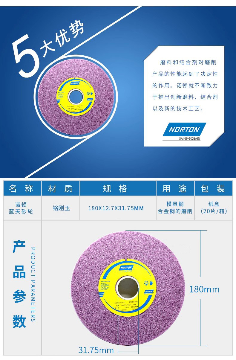 诺顿 砂轮 66253296174 铬钢玉 180.00 x12.70x31.75mm 1个