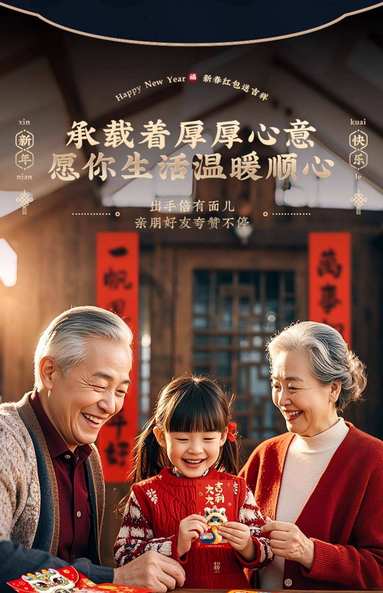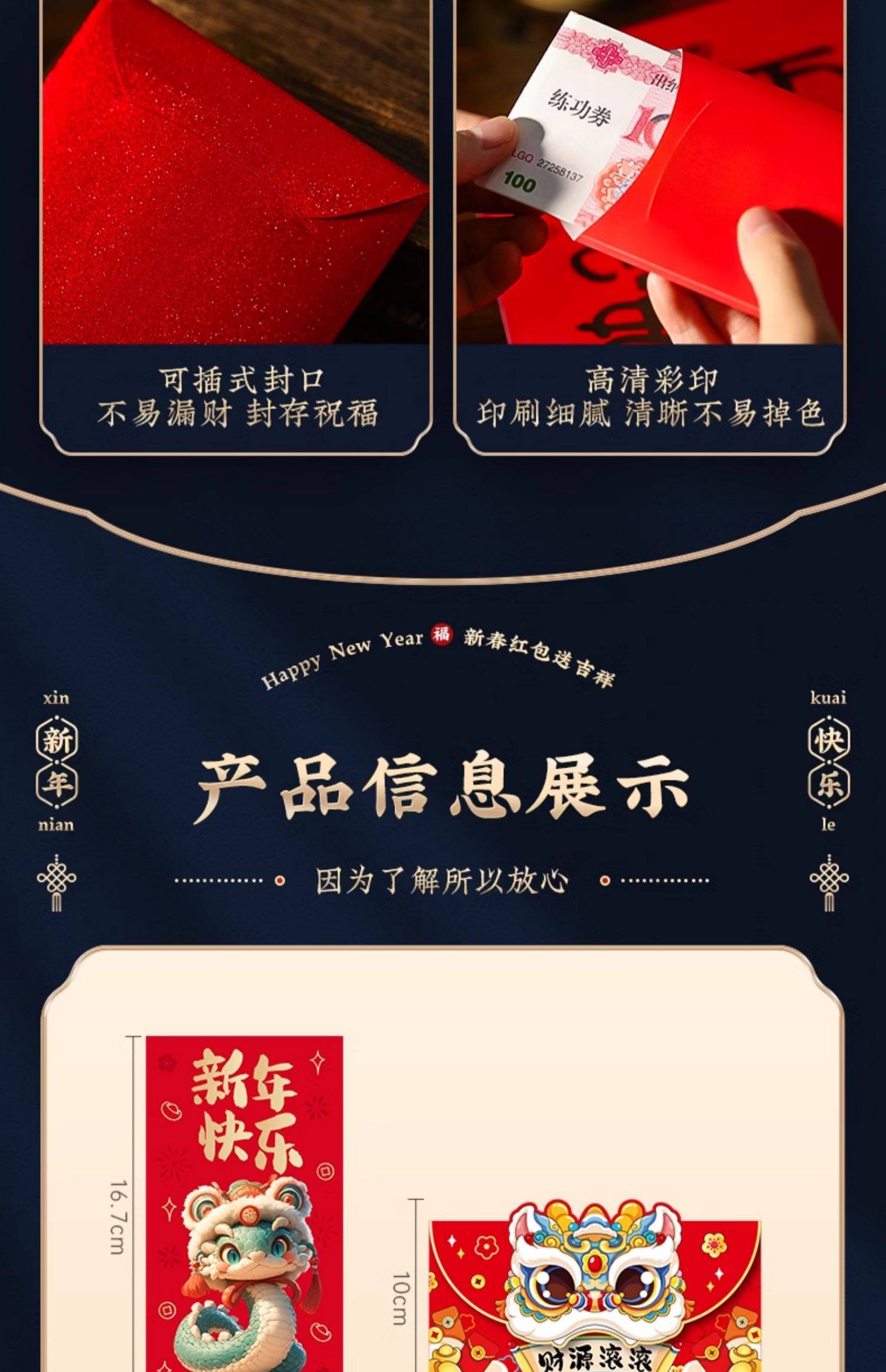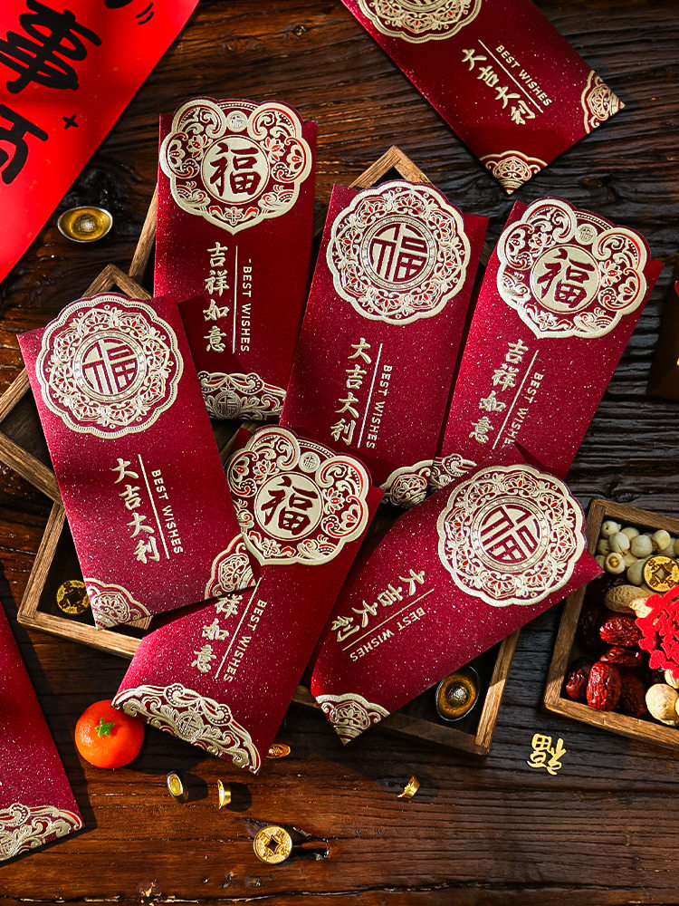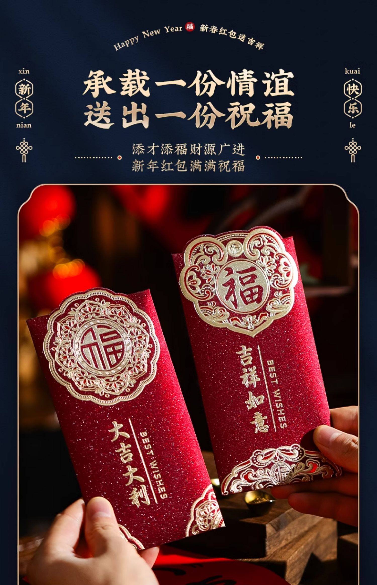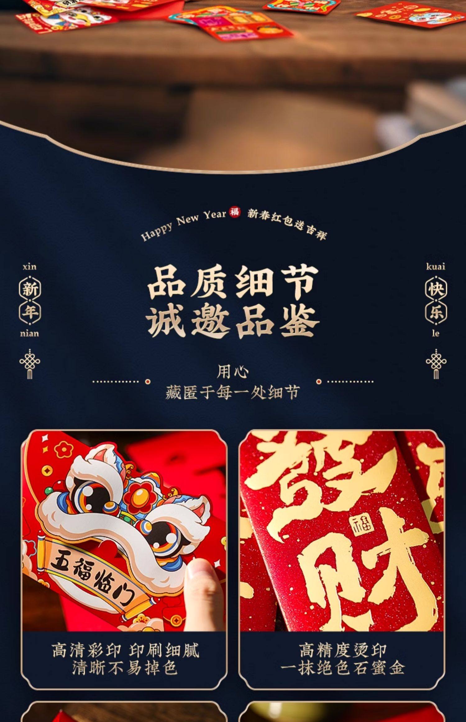 国产通用 马年压岁钱红包 【新年快乐】金葱磨砂版 6个 1件