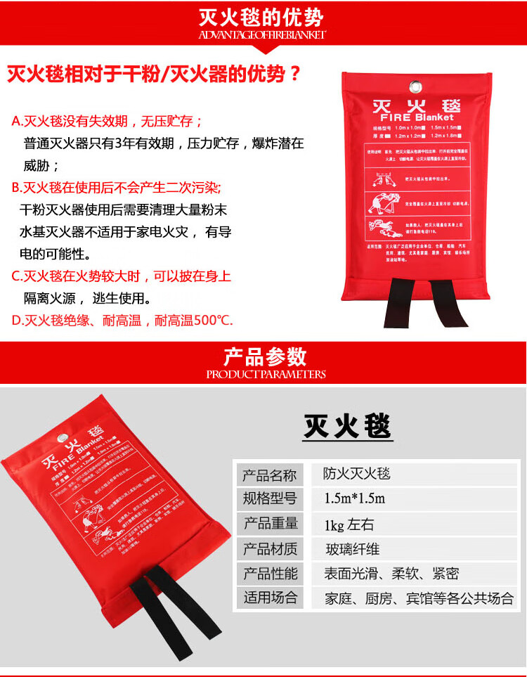 文举消防 灭火毯 1.5M*1.5M 1盒