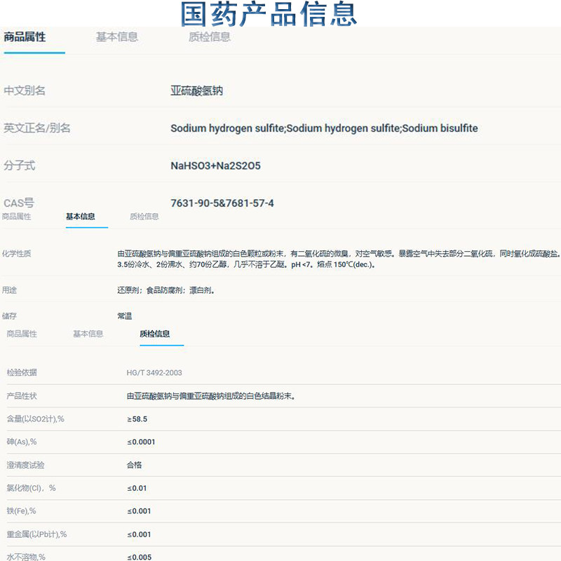 • 商品名称:沪试 亚硫酸氢钠试剂