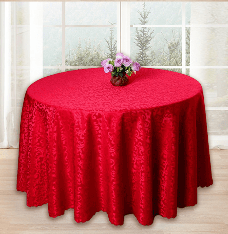 海斯迪克 欧式布艺双勾花餐桌布 KP32-5 大红色 直径2.8m 1个