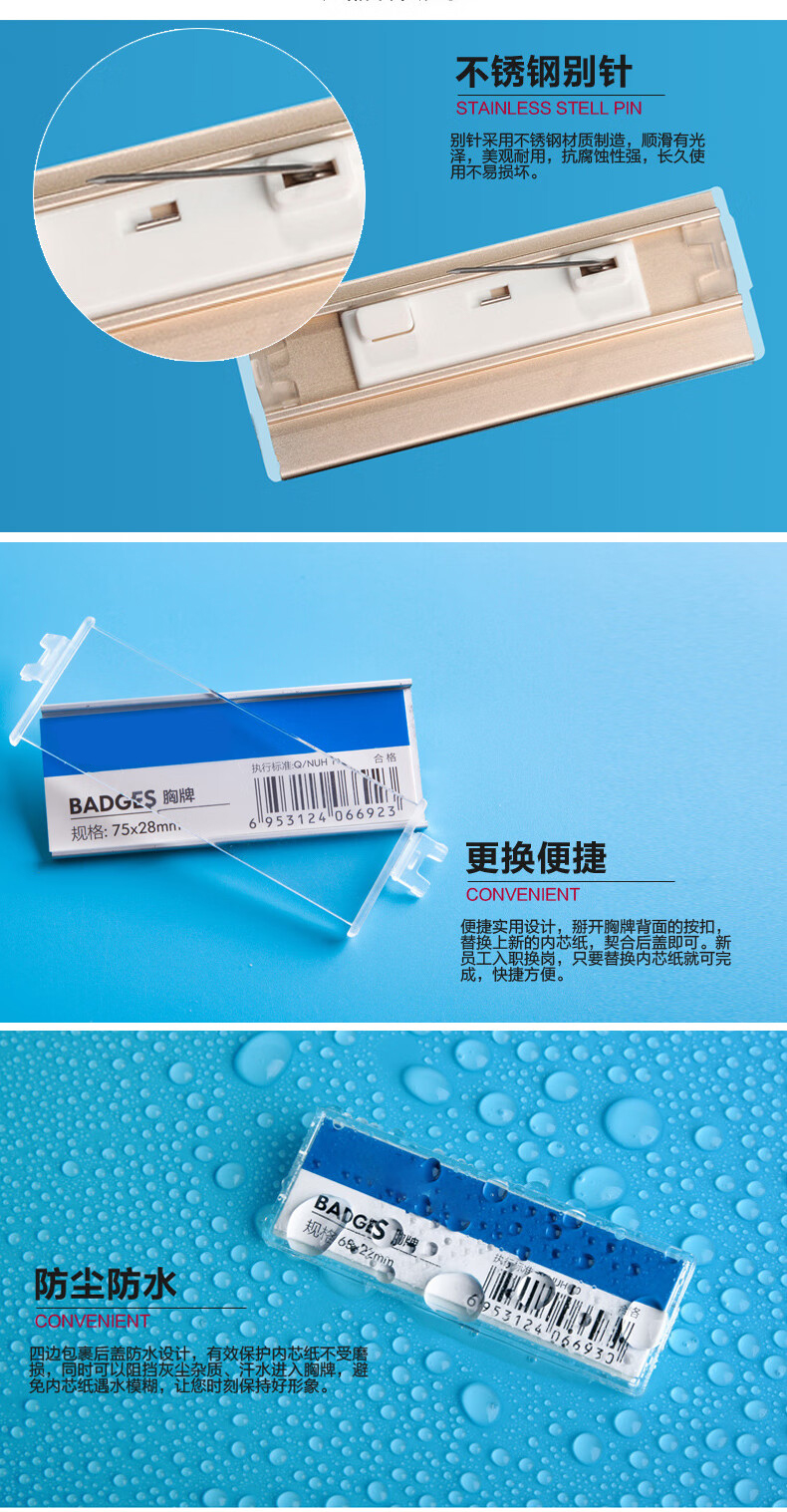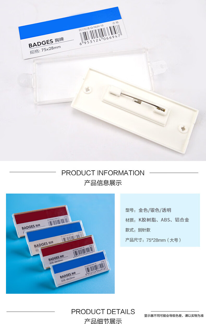 海斯迪克 大号金色 胸牌 KS347-1 铝合金 7.5*2.8cm 1个