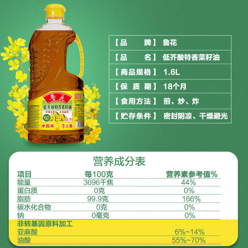 鲁花 低芥酸特香菜籽油 1.6L 1桶