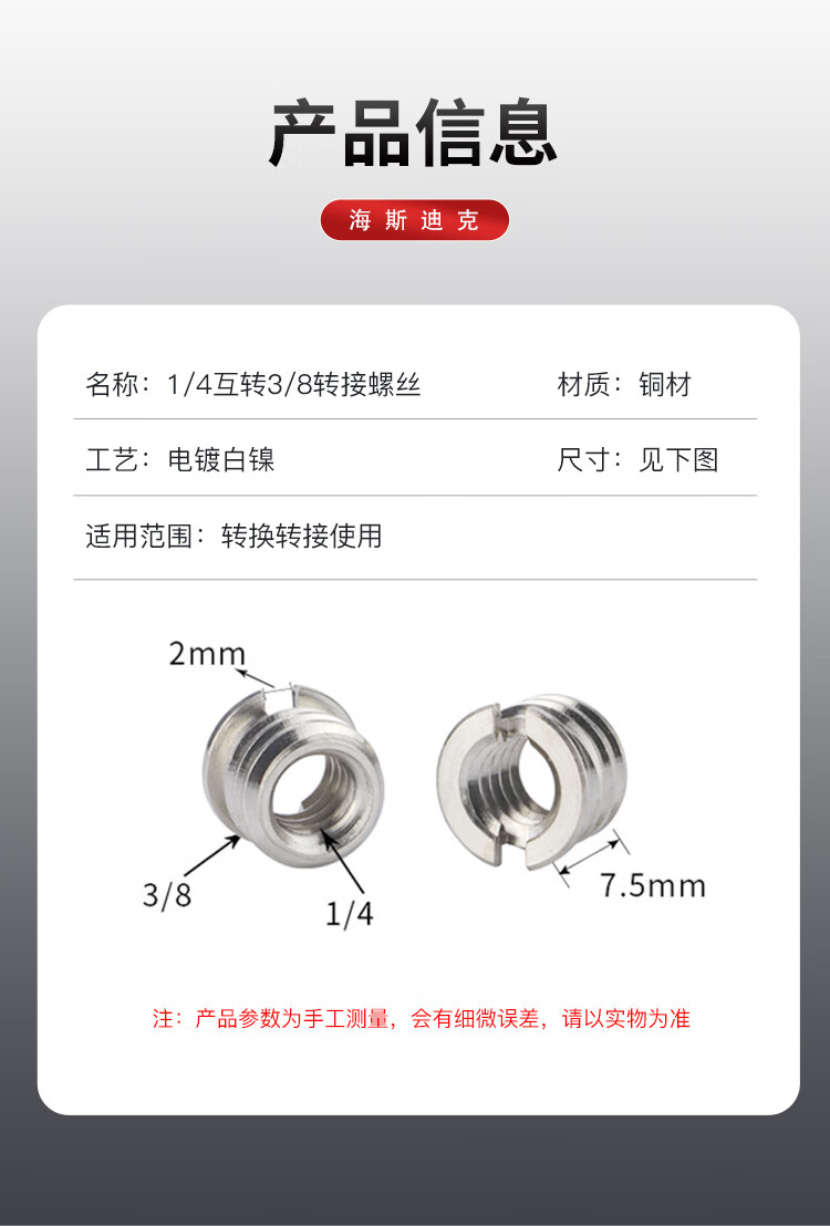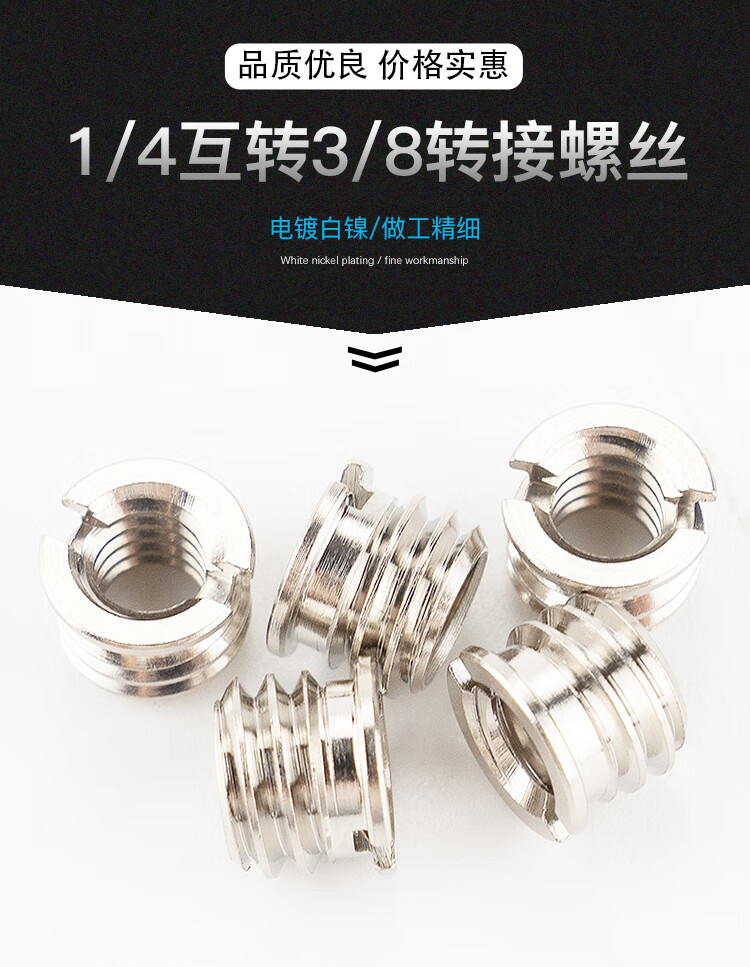 海斯迪克 铜材1/4互转3/8转接螺丝 KJ106-1 电镀白镍 1个