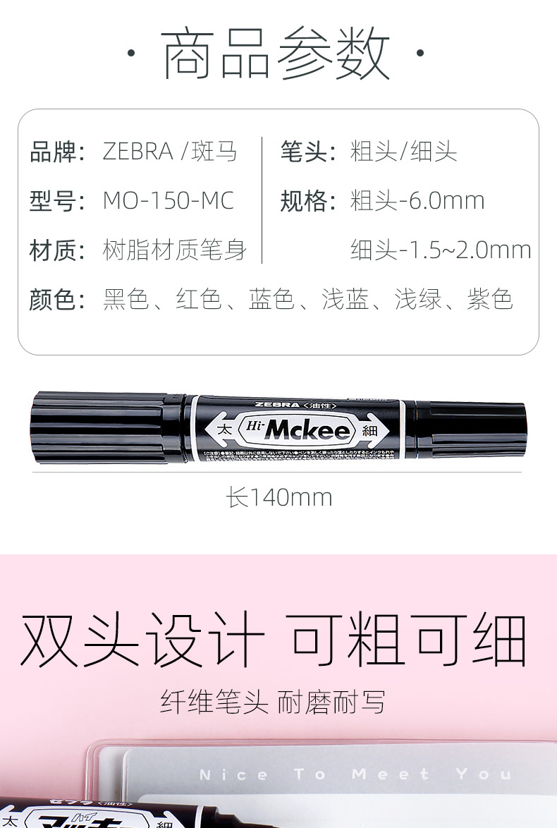 斑马 记号笔 蓝色 双头 1支