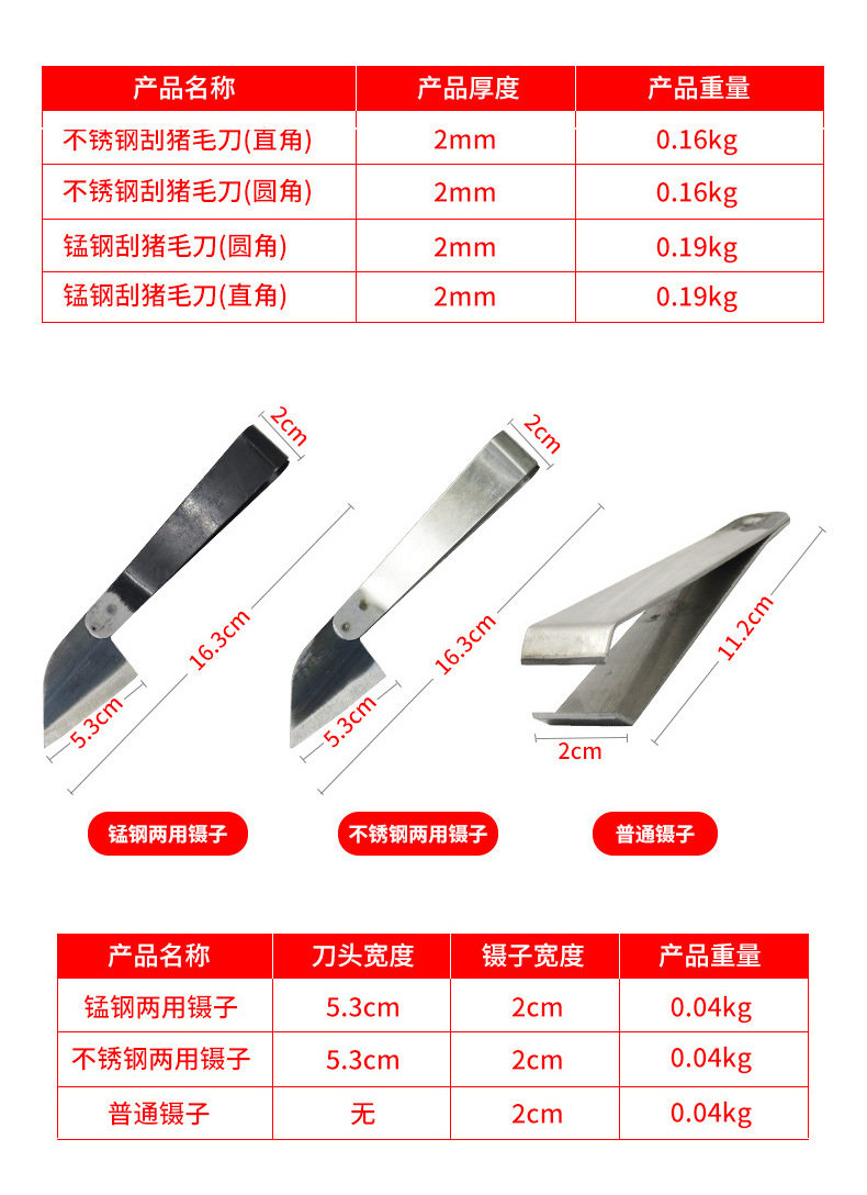国产通用 不锈钢两用猪毛镊子 总长16.3cm 刀头宽度5.3cm 镊子宽度2cm 1个