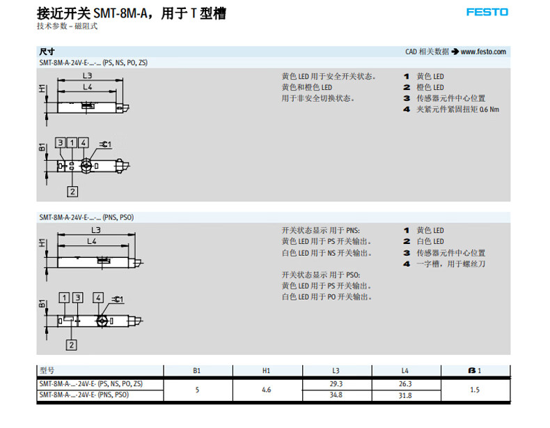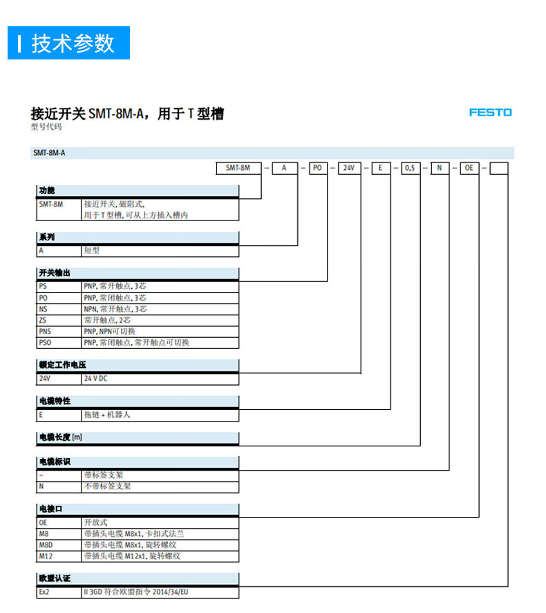 费斯托 接近开关 574335 SMT-8M-A-PS-24V-E-2,5-OE 1个