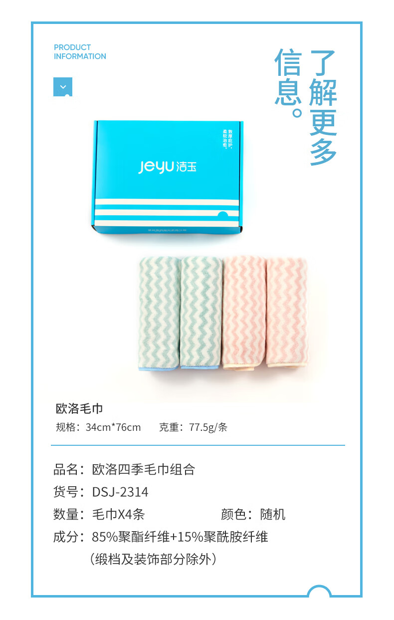洁玉 寓•四时系列欧洛四季毛巾组合 DSJ-2314 4条 1盒
