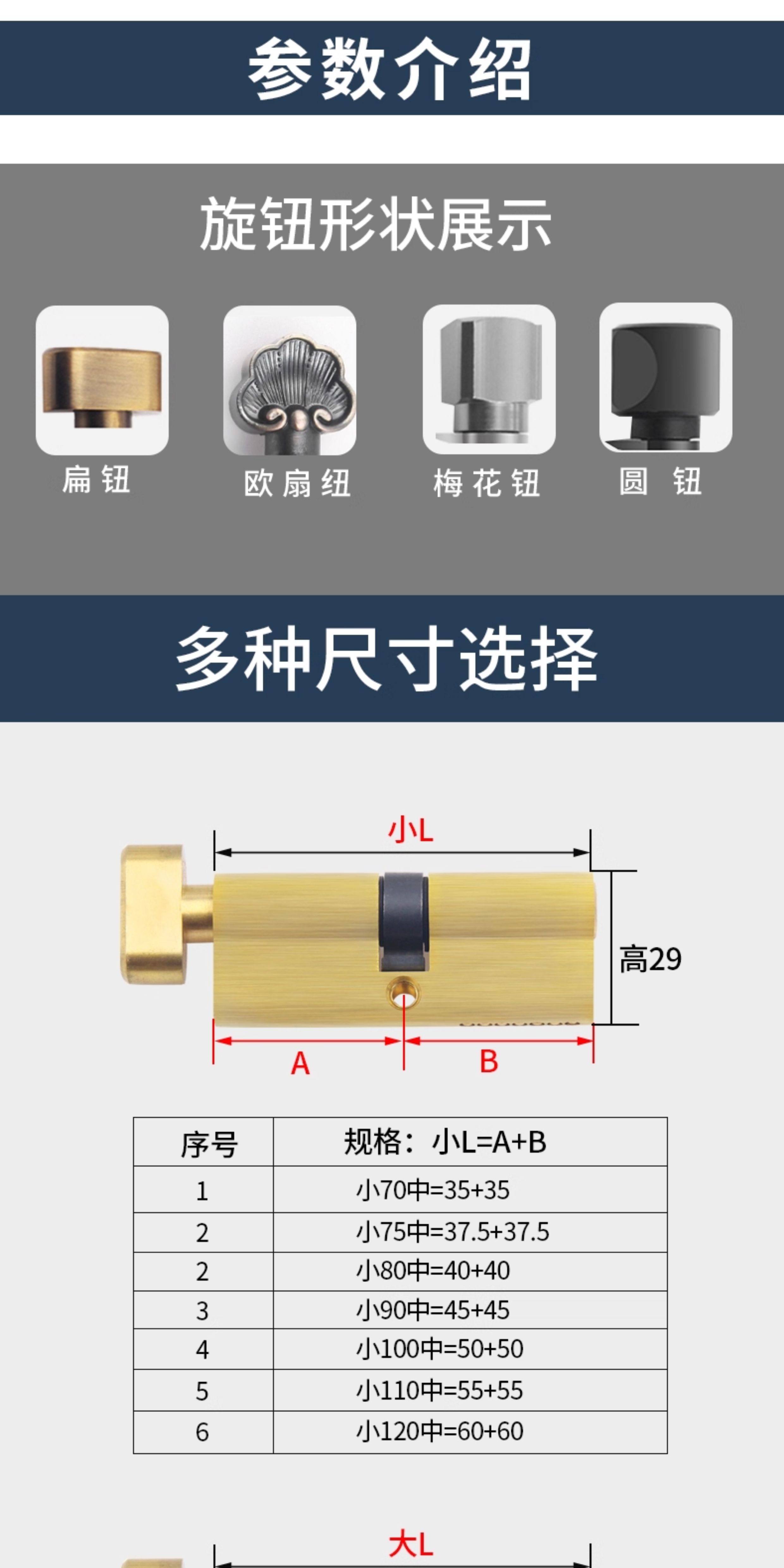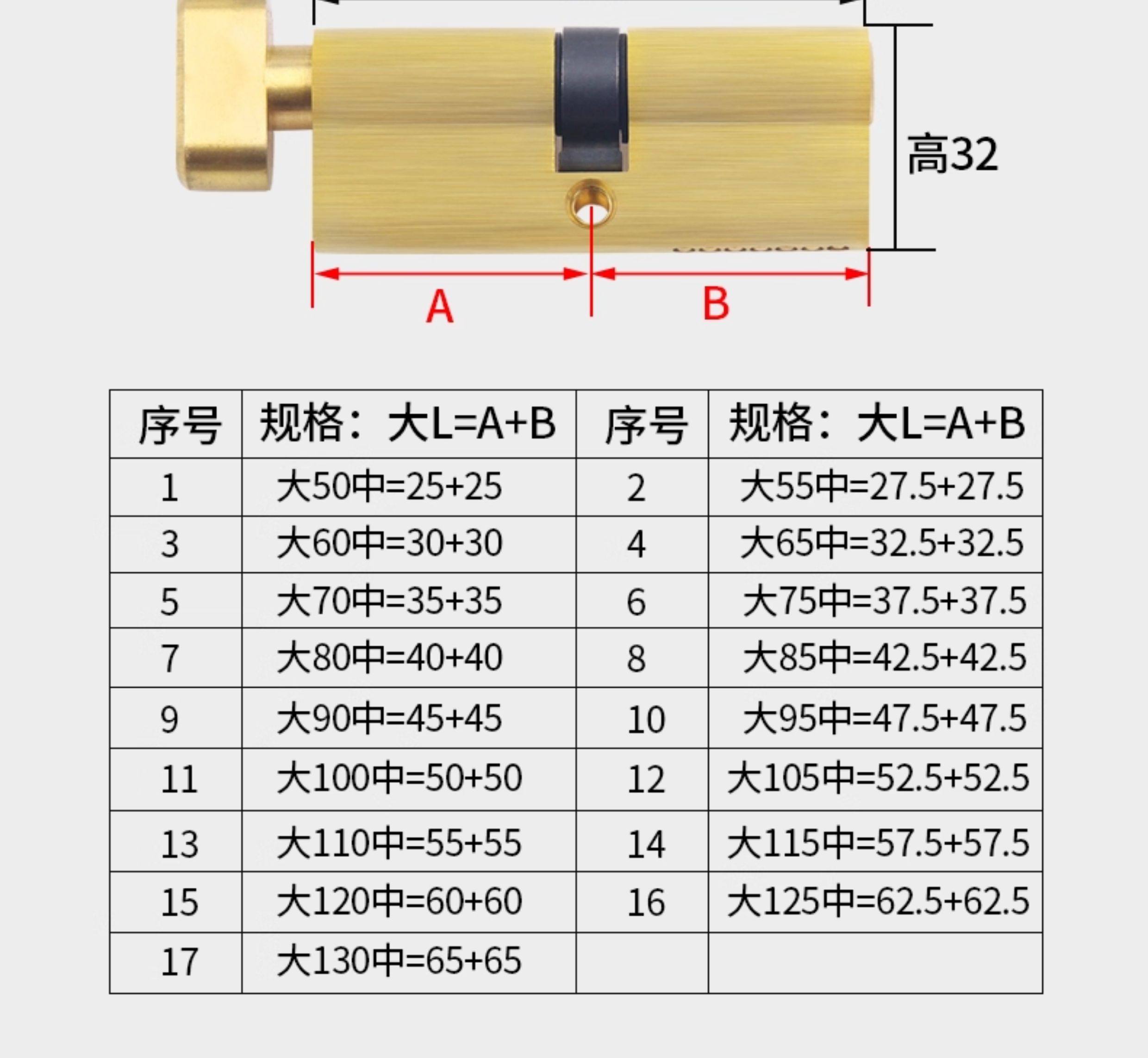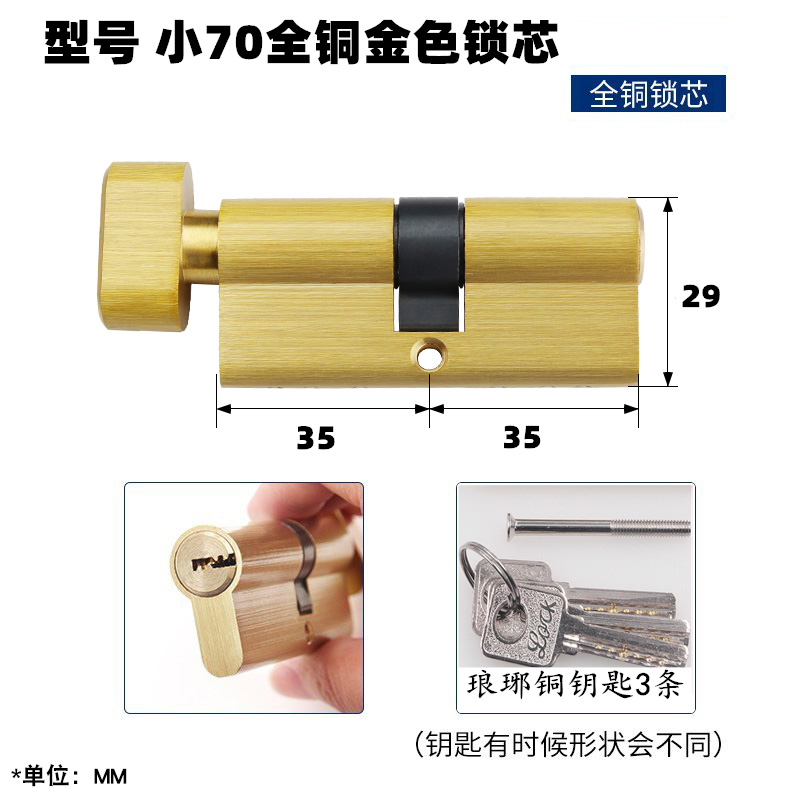 国产通用 培训室门锁芯 小70 高29 长70 全铜金色3个钥匙 1套