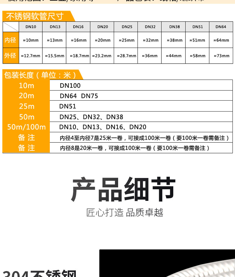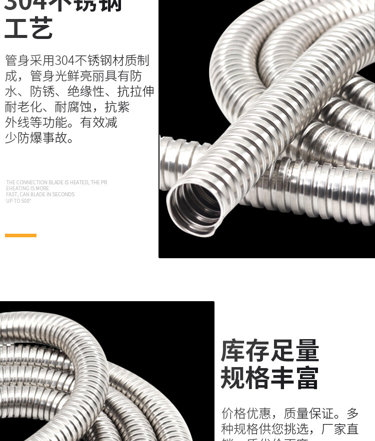海斯迪克 金属穿线软管 304不锈钢 50m 1卷
