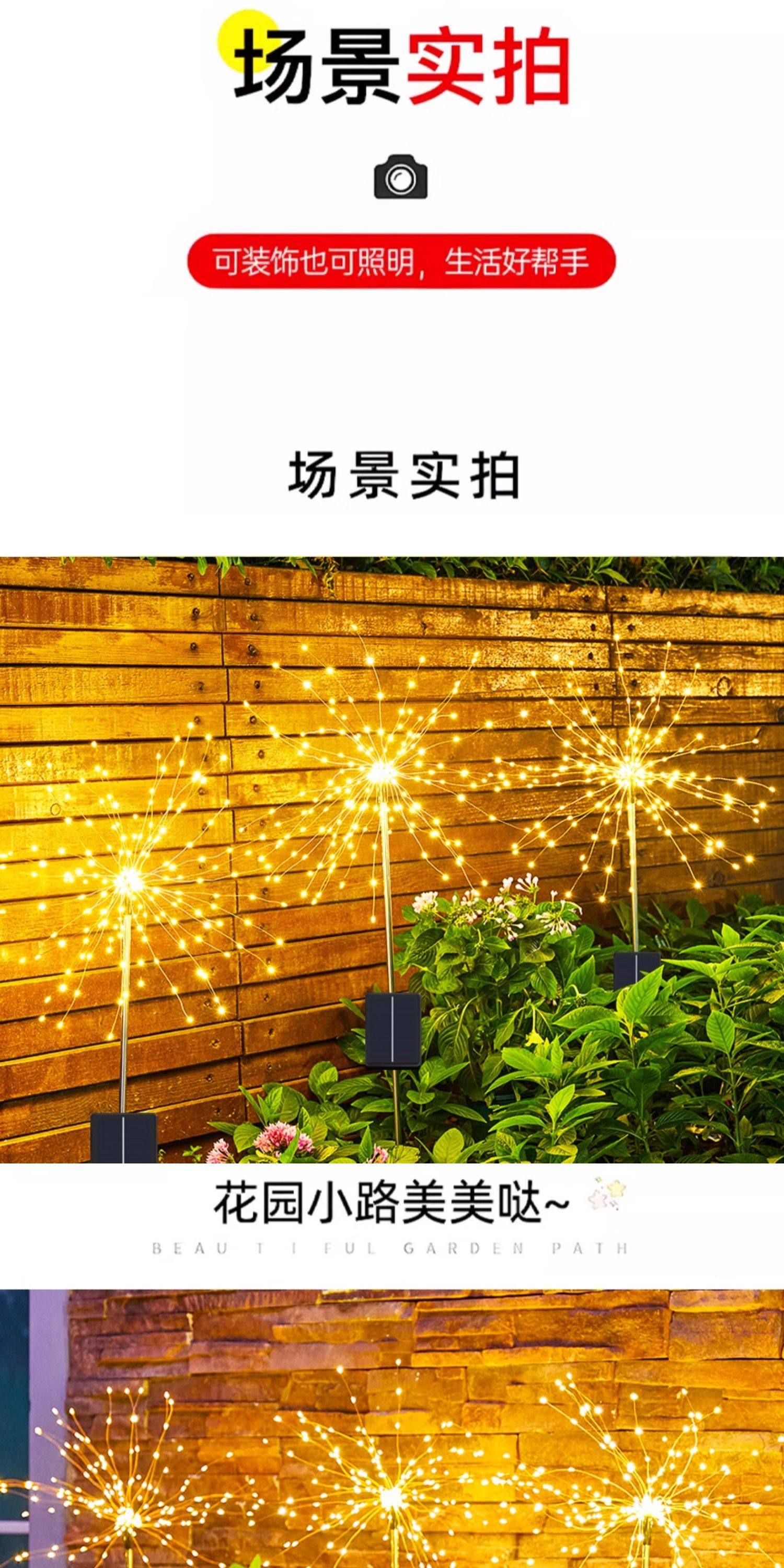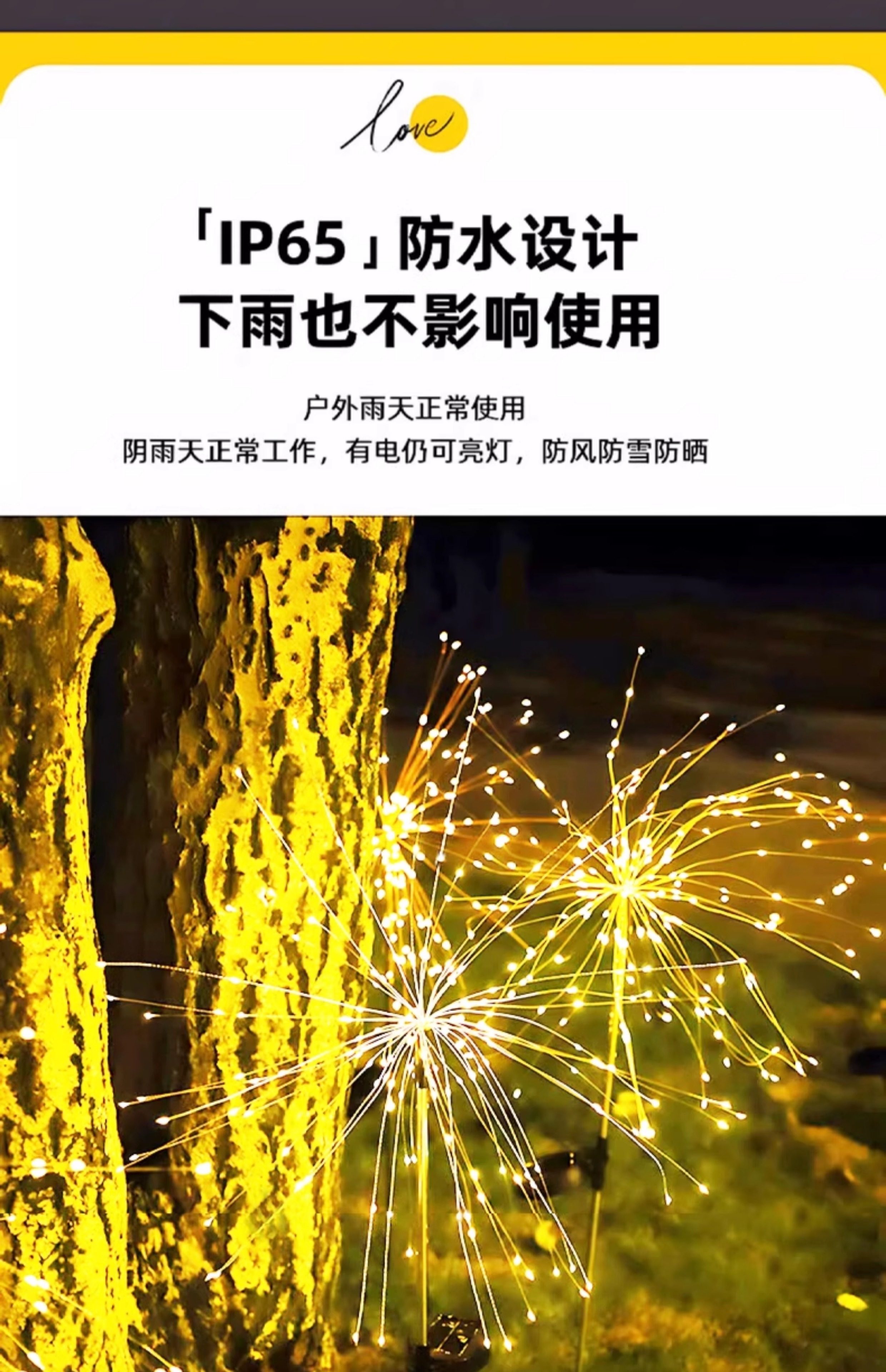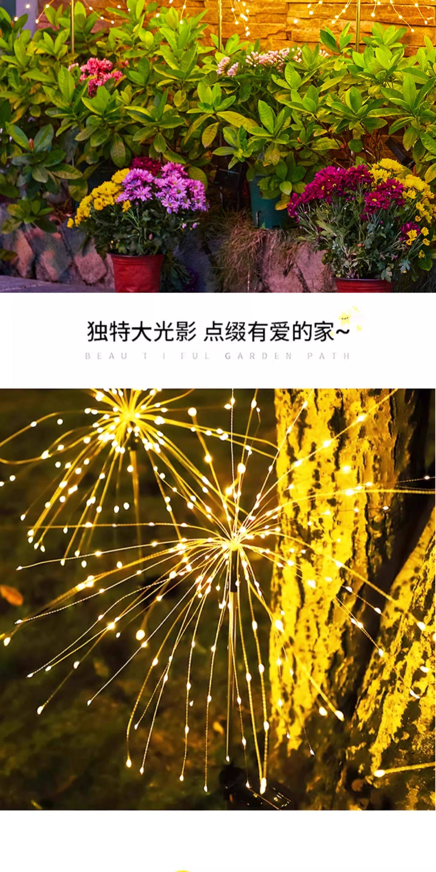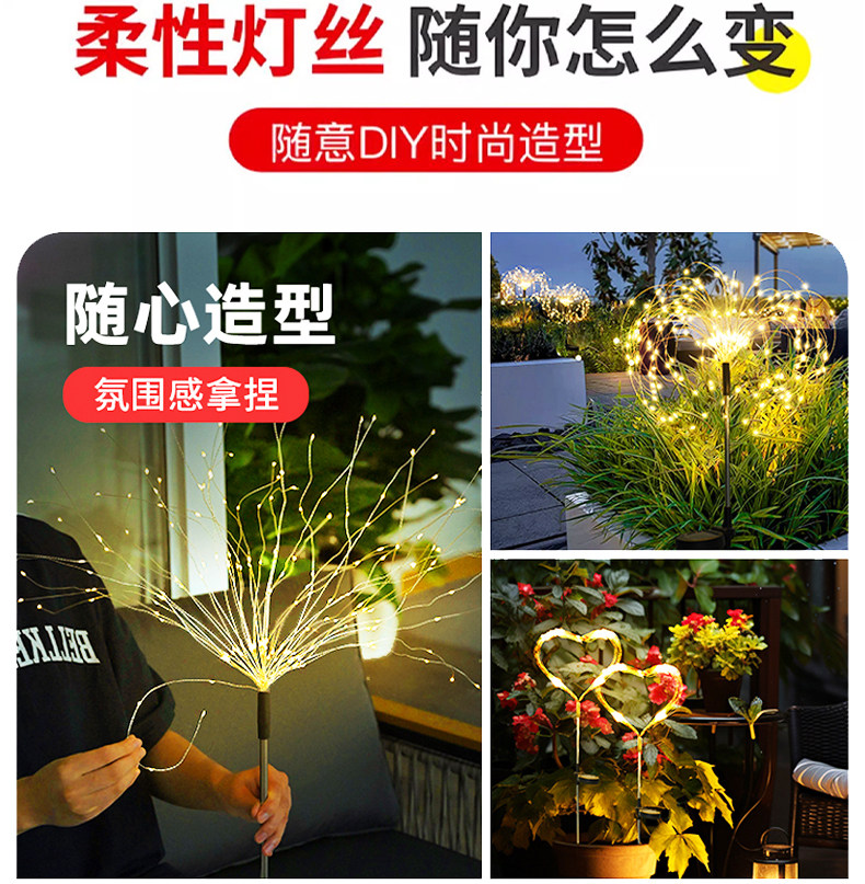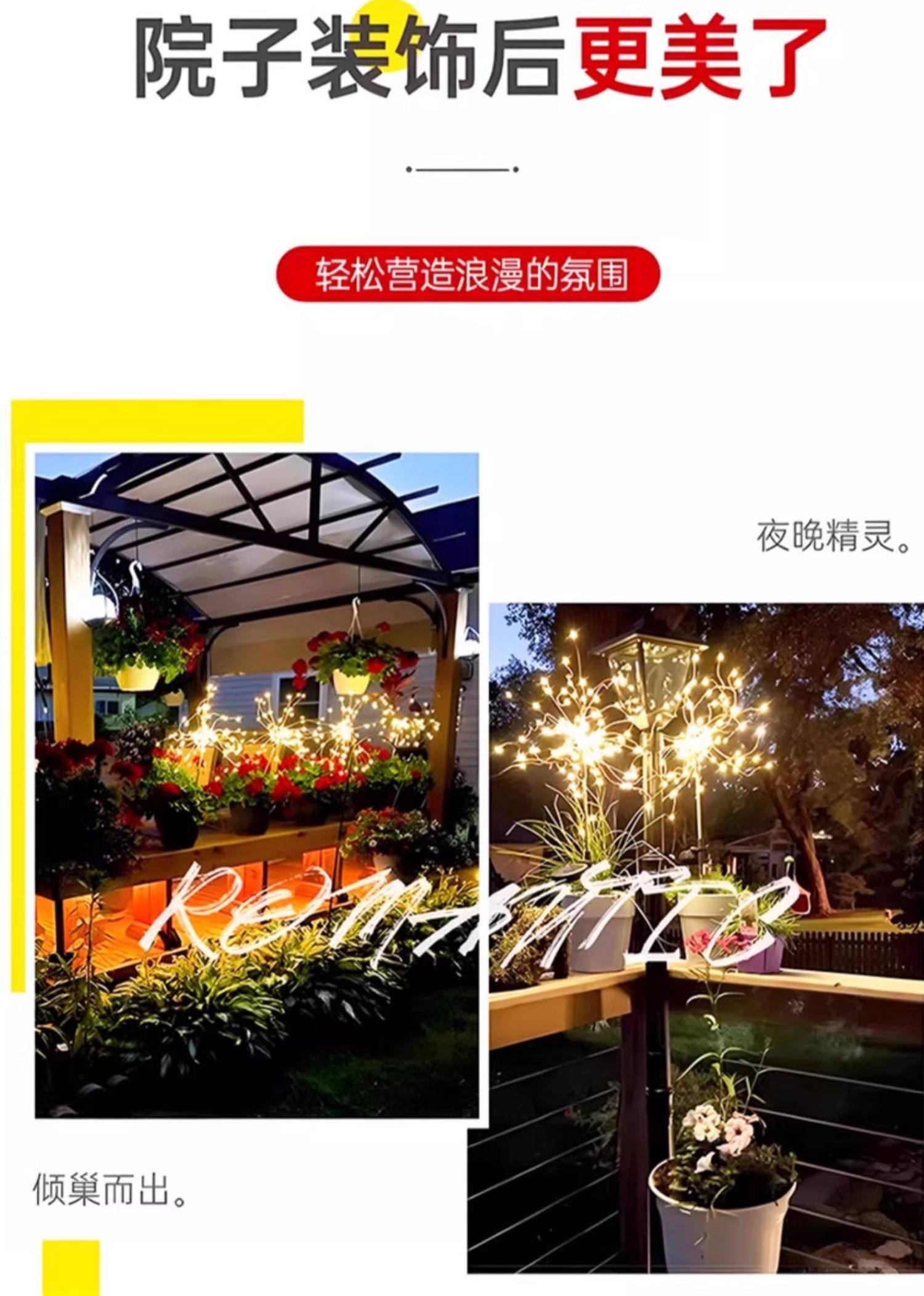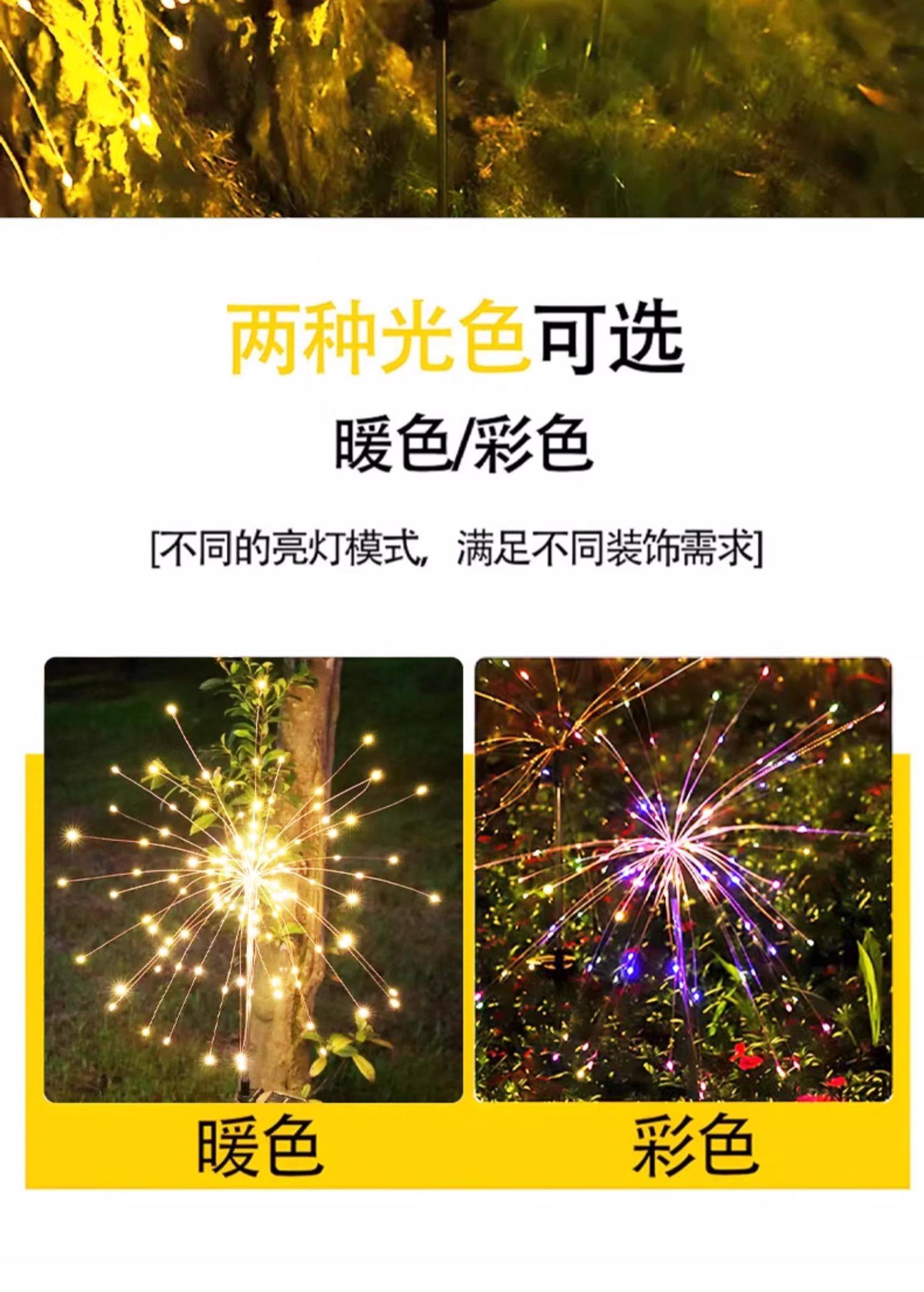 国产通用 太阳能烟花灯 8模式-高亮12小时 暖光120灯 4只 1包