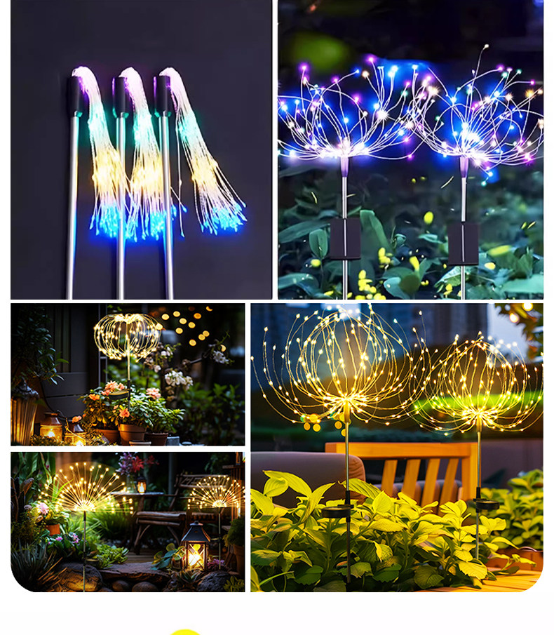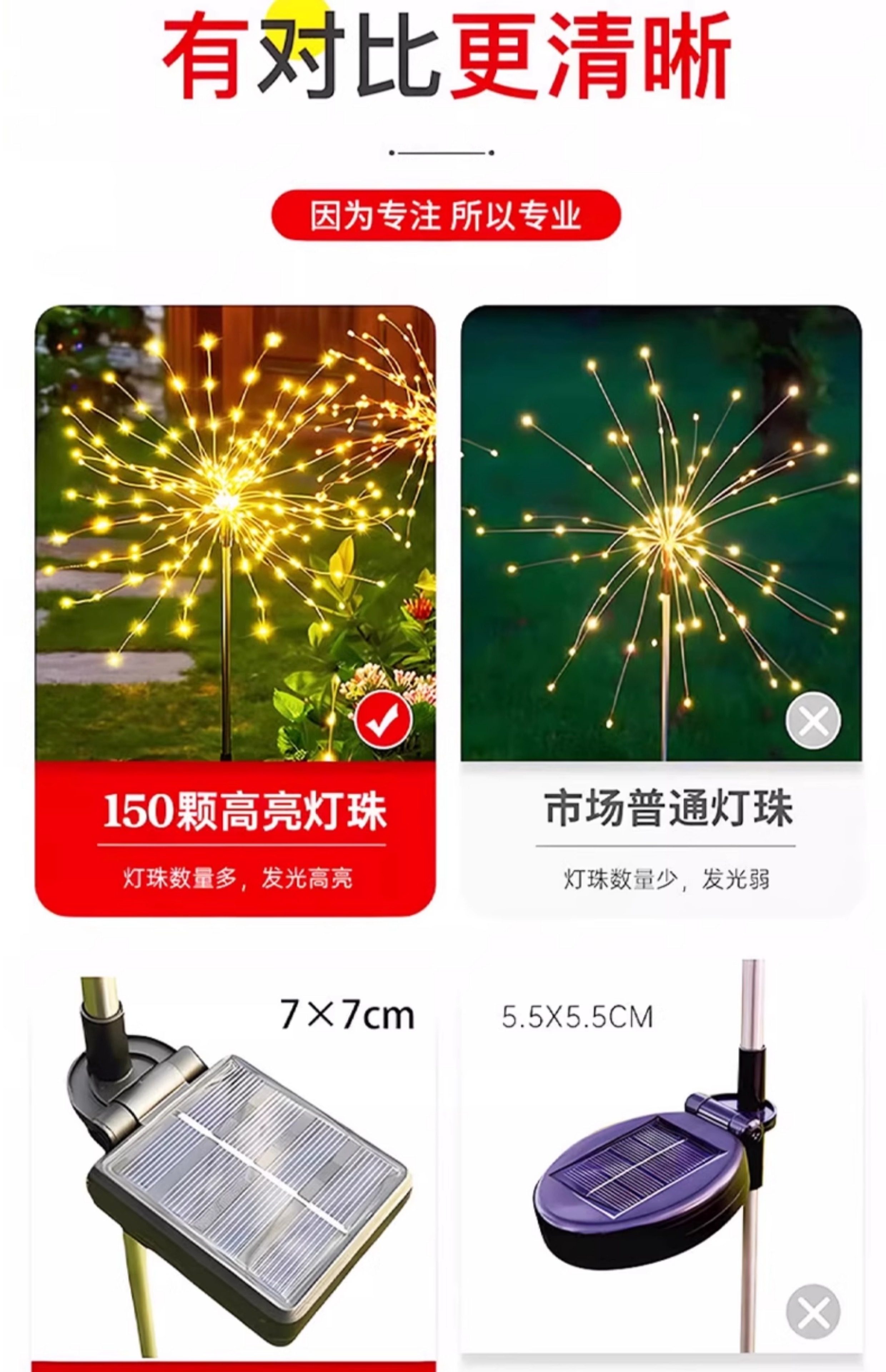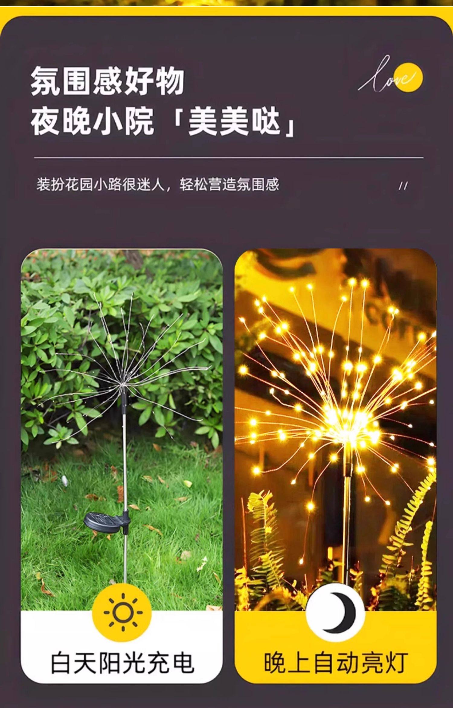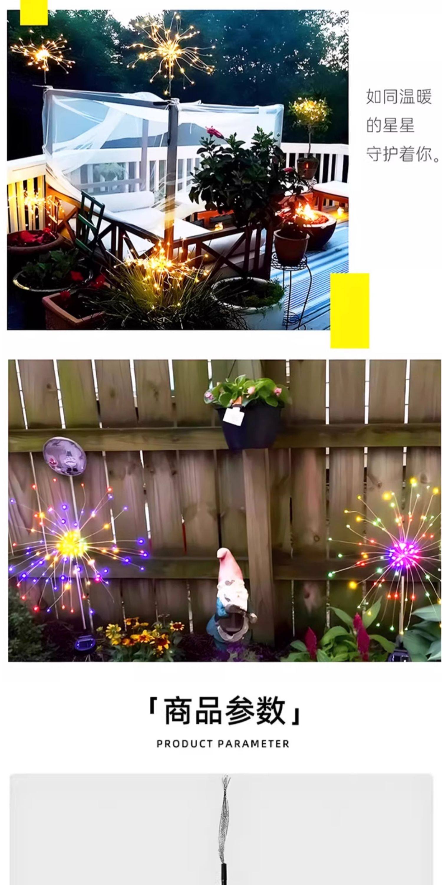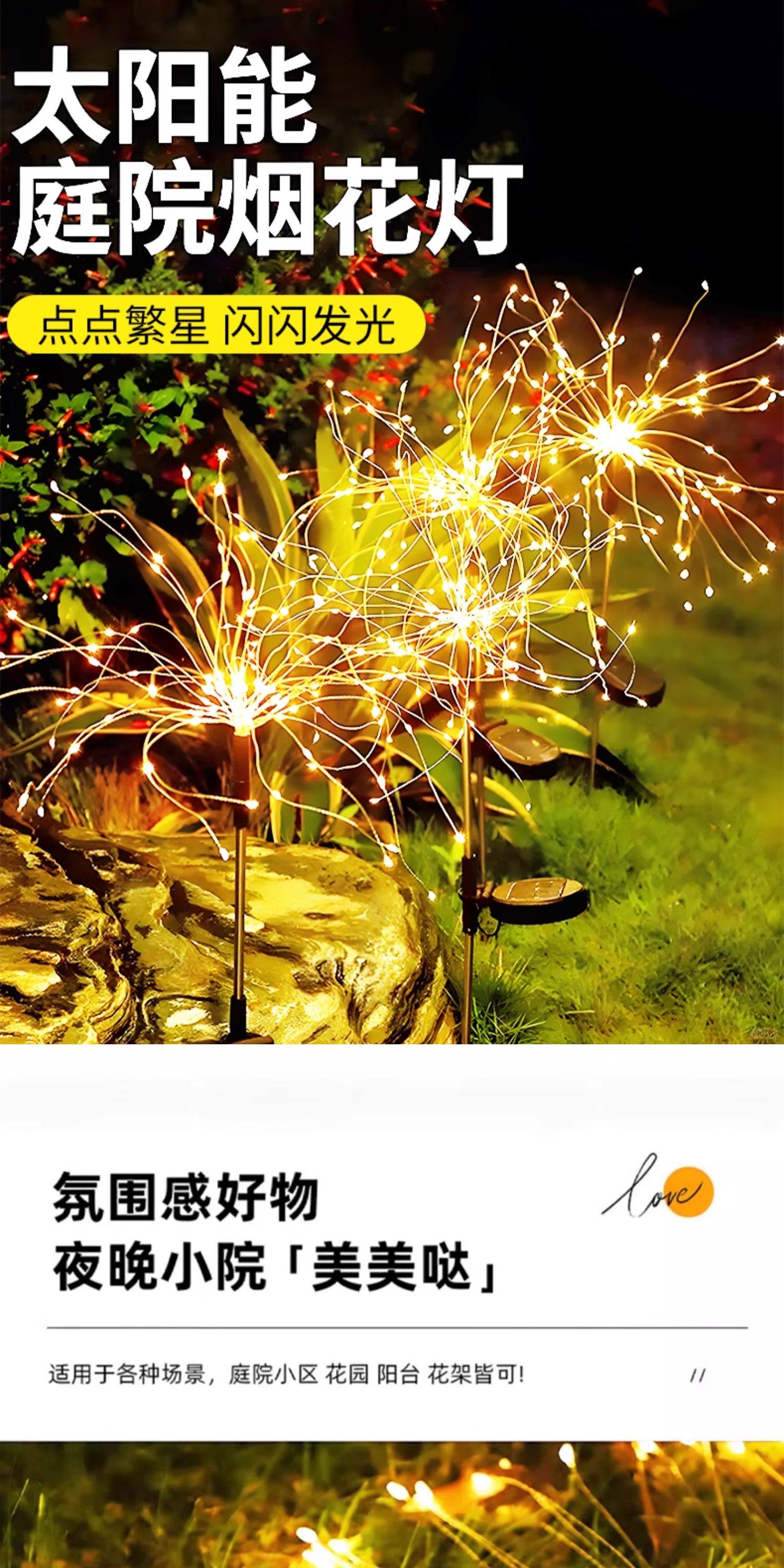 国产通用 太阳能烟花灯 8模式-高亮12小时 暖光120灯 4只 1包
