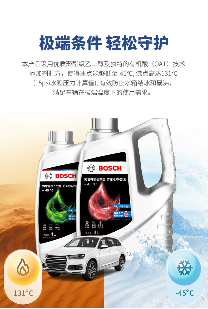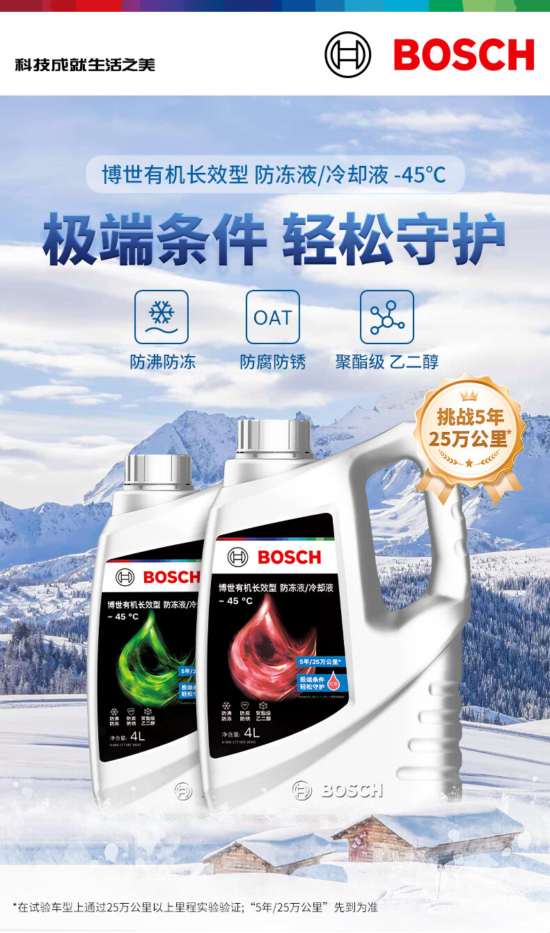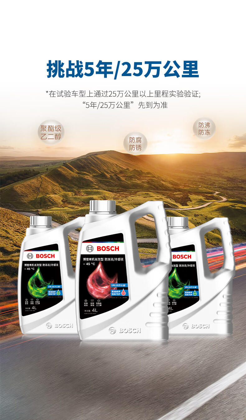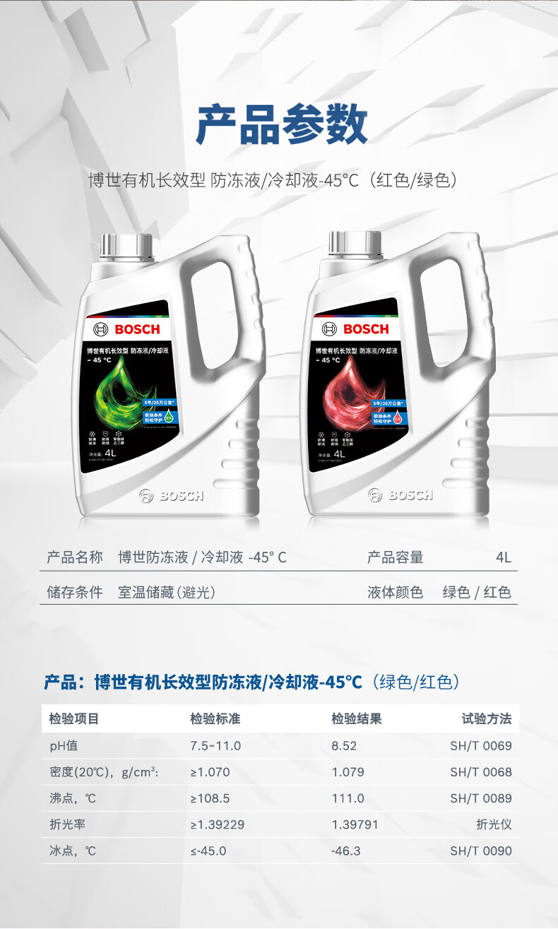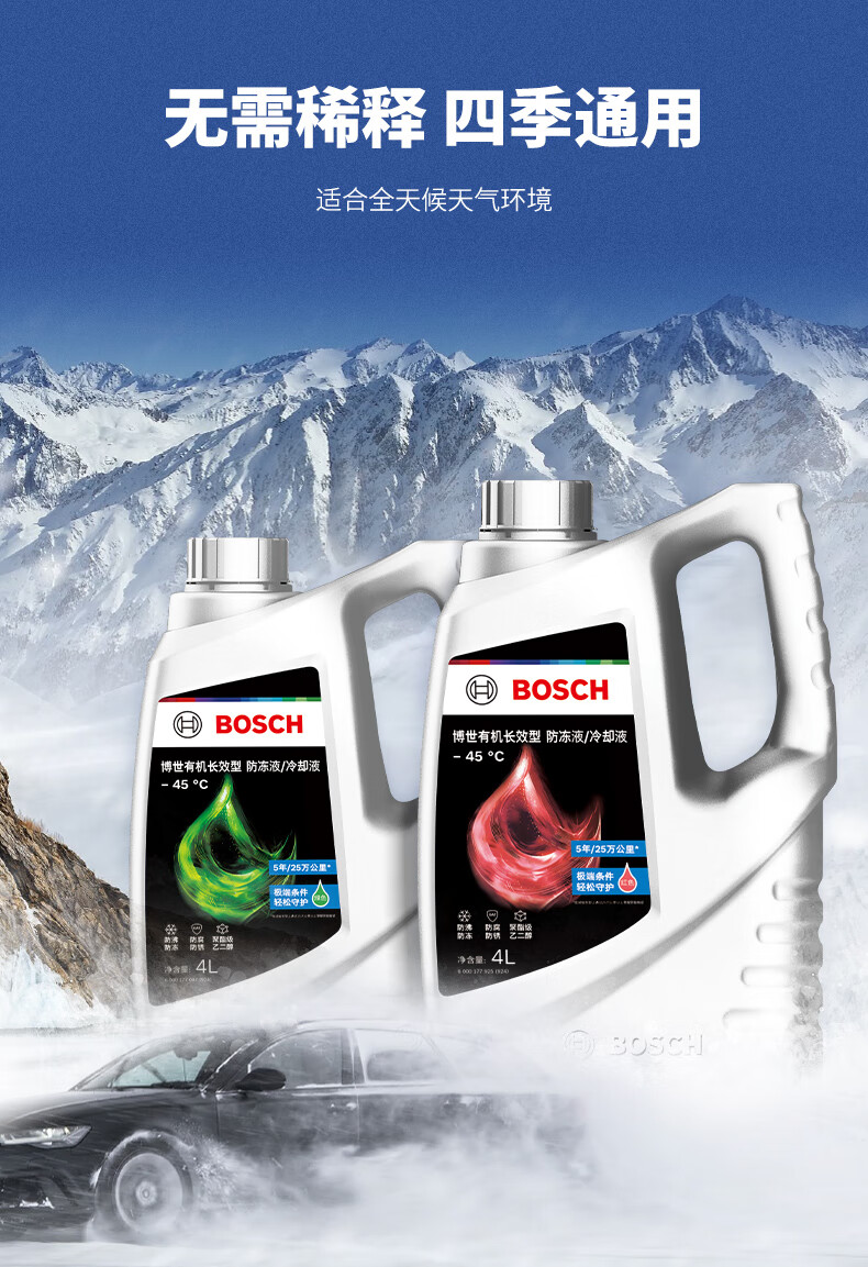 博世 有机长效汽车防冻液 红色 冰点-45℃ 4L 1桶