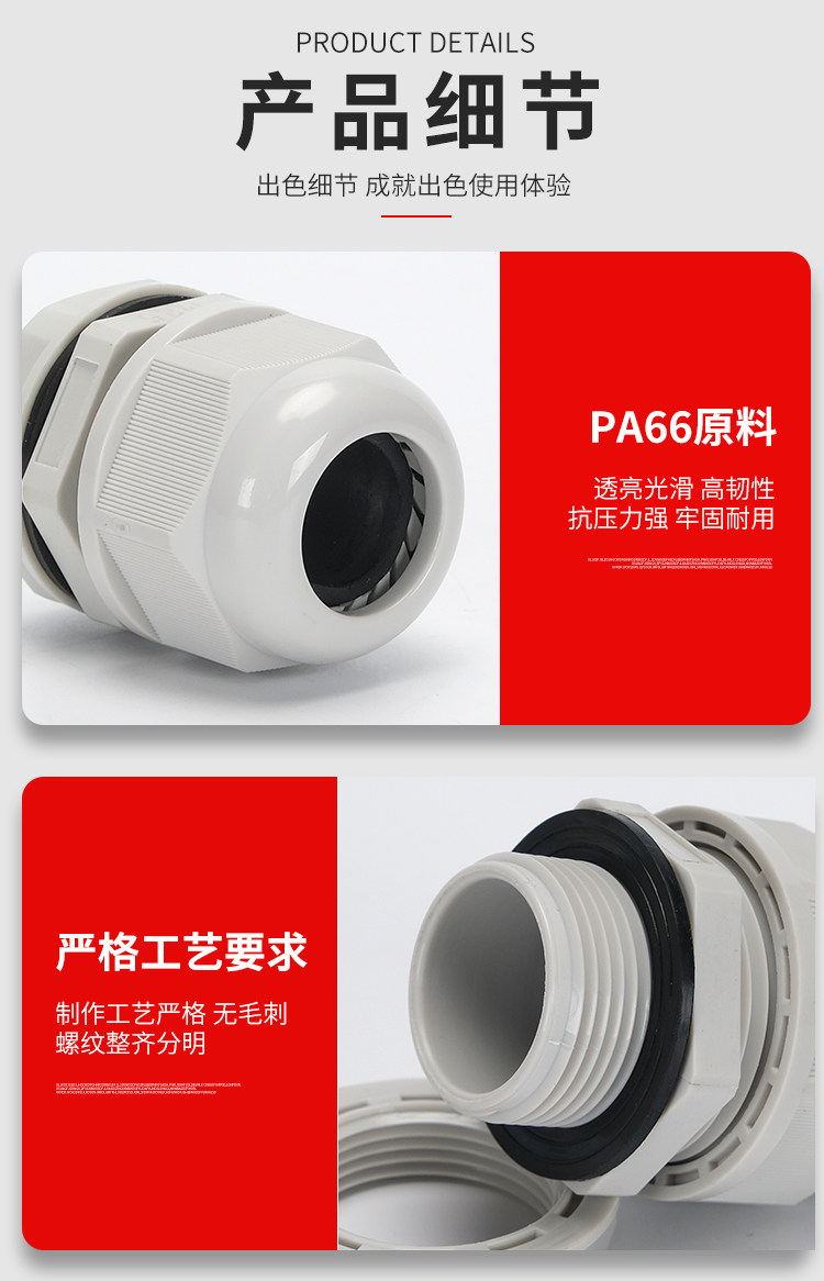 国产通用 PG型V1级阻燃尼龙电缆防水接头 M25*1.5(锁线13-18) 黑色 10只 1包
