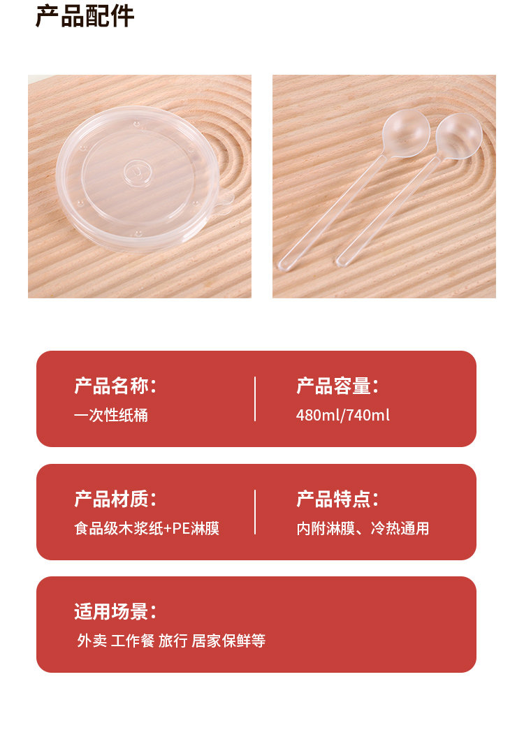 古月 一次性牛皮纸汤桶打包盒 16A(暖胃更暖心)纸桶+pp盖 50套 1包