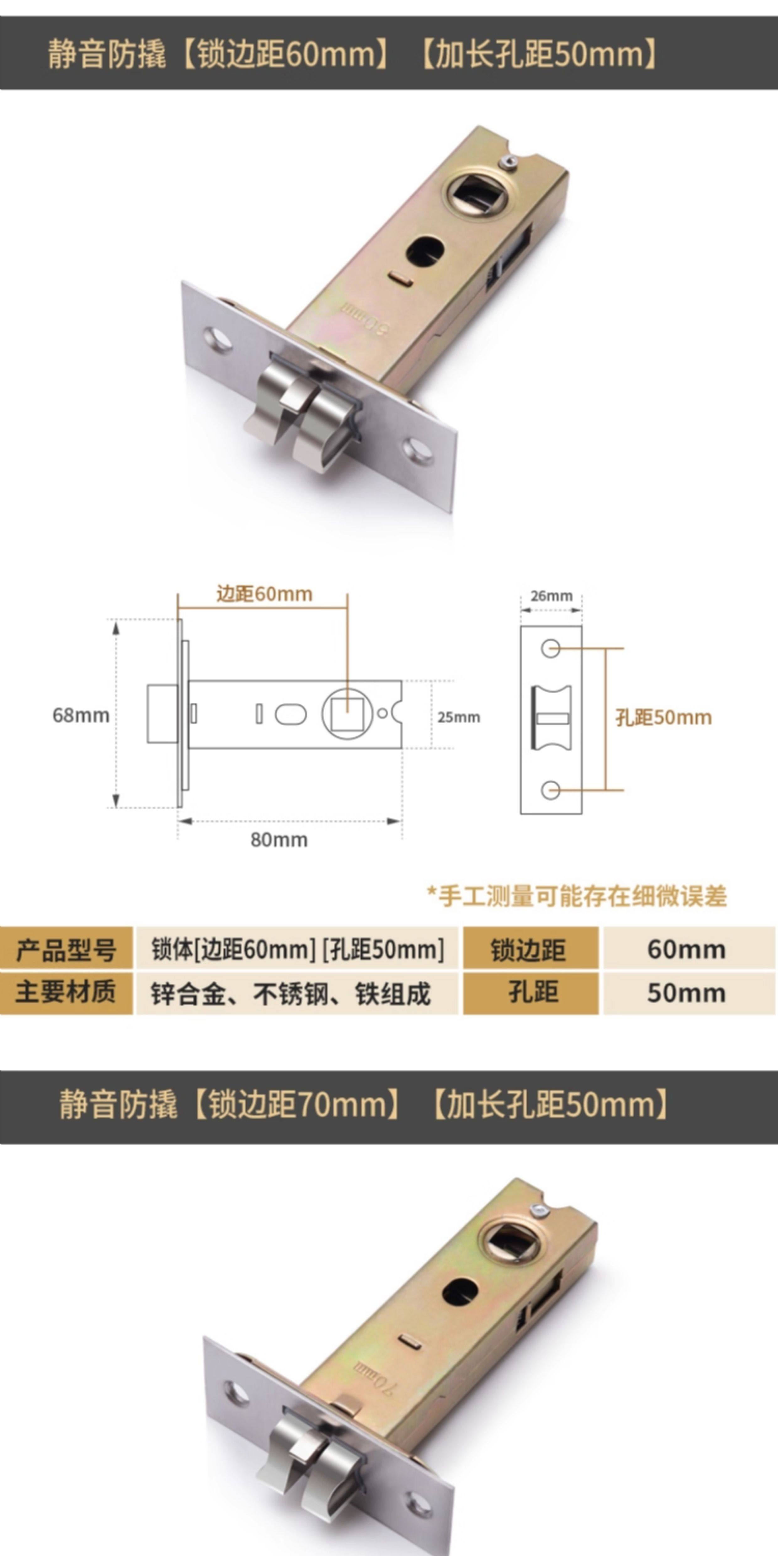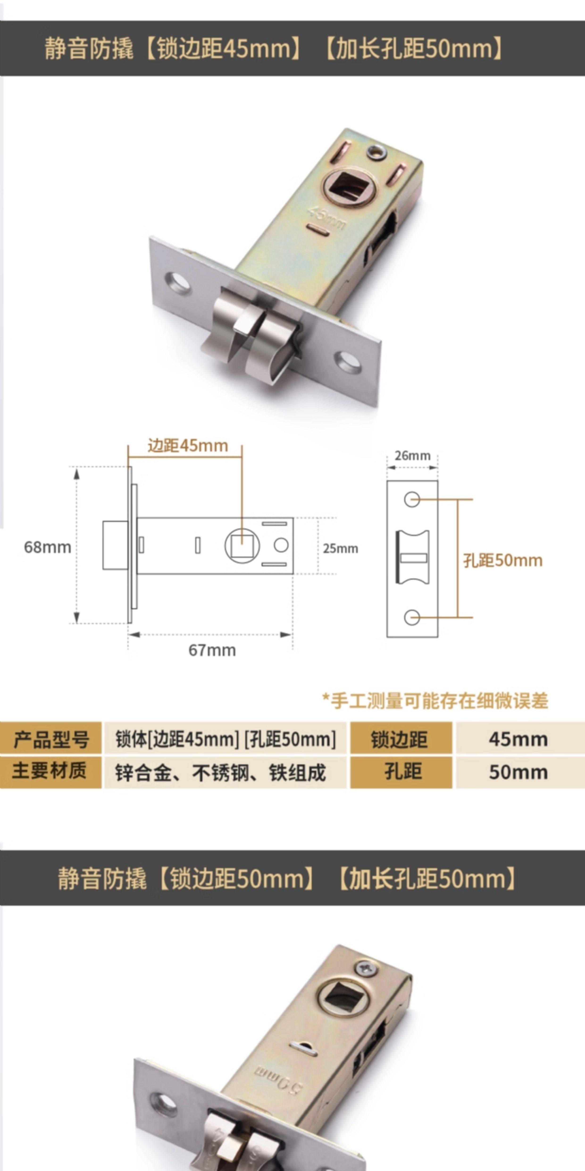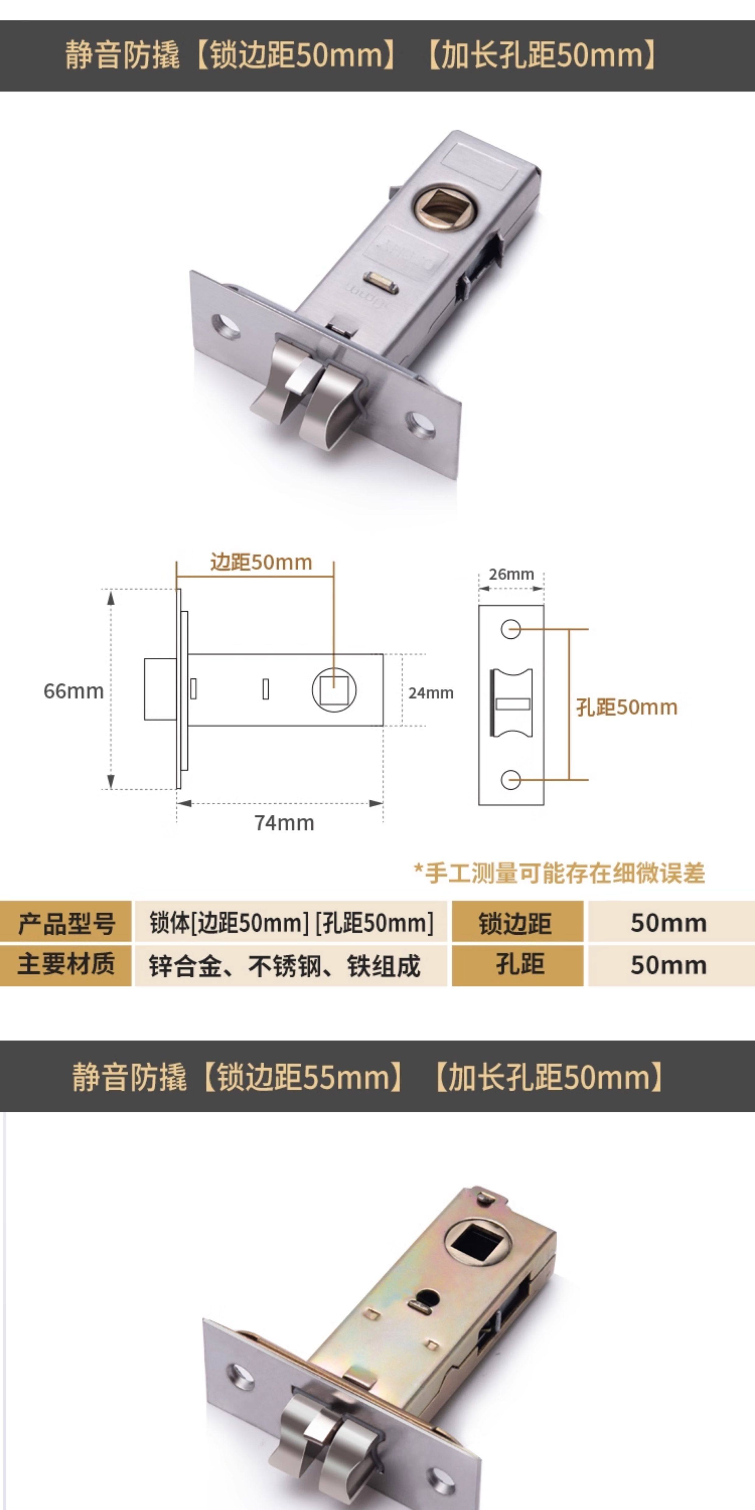 国产通用 卫生间锁芯 静音防撬 锁边距50MM 1个