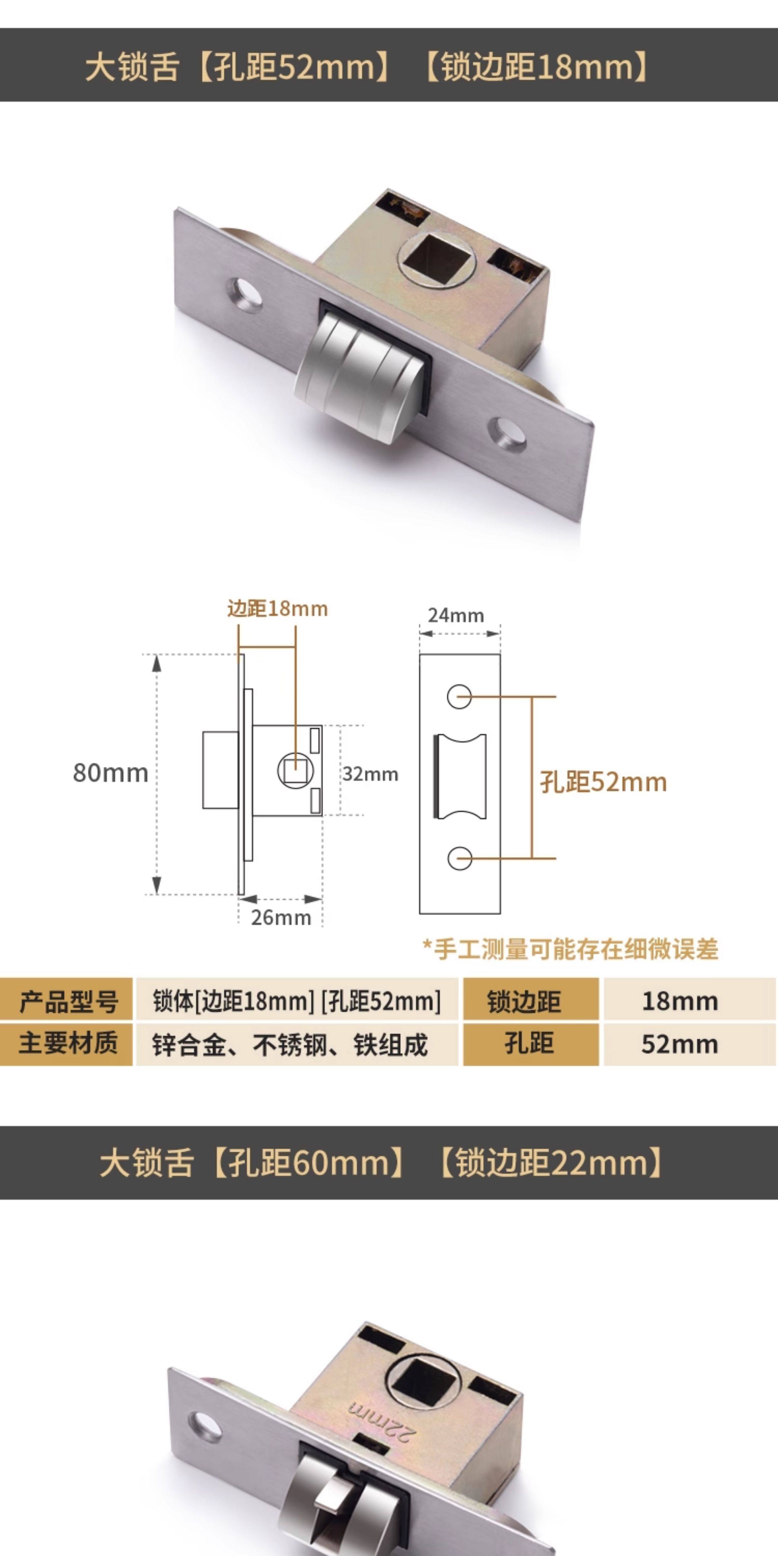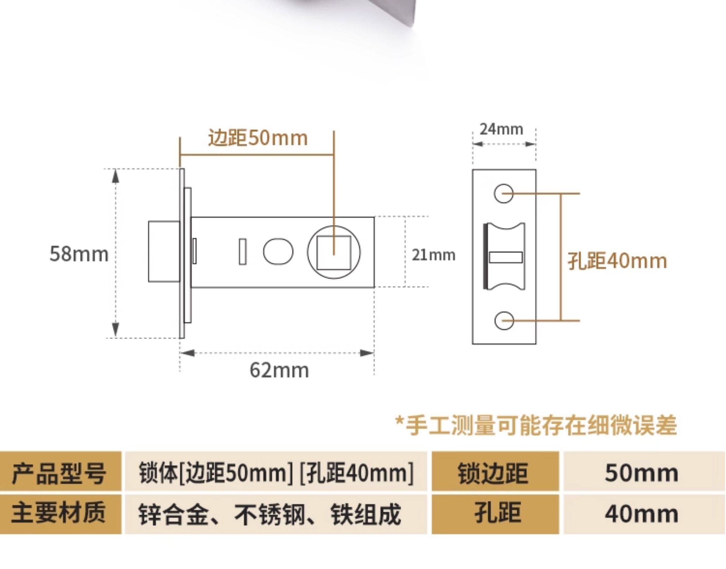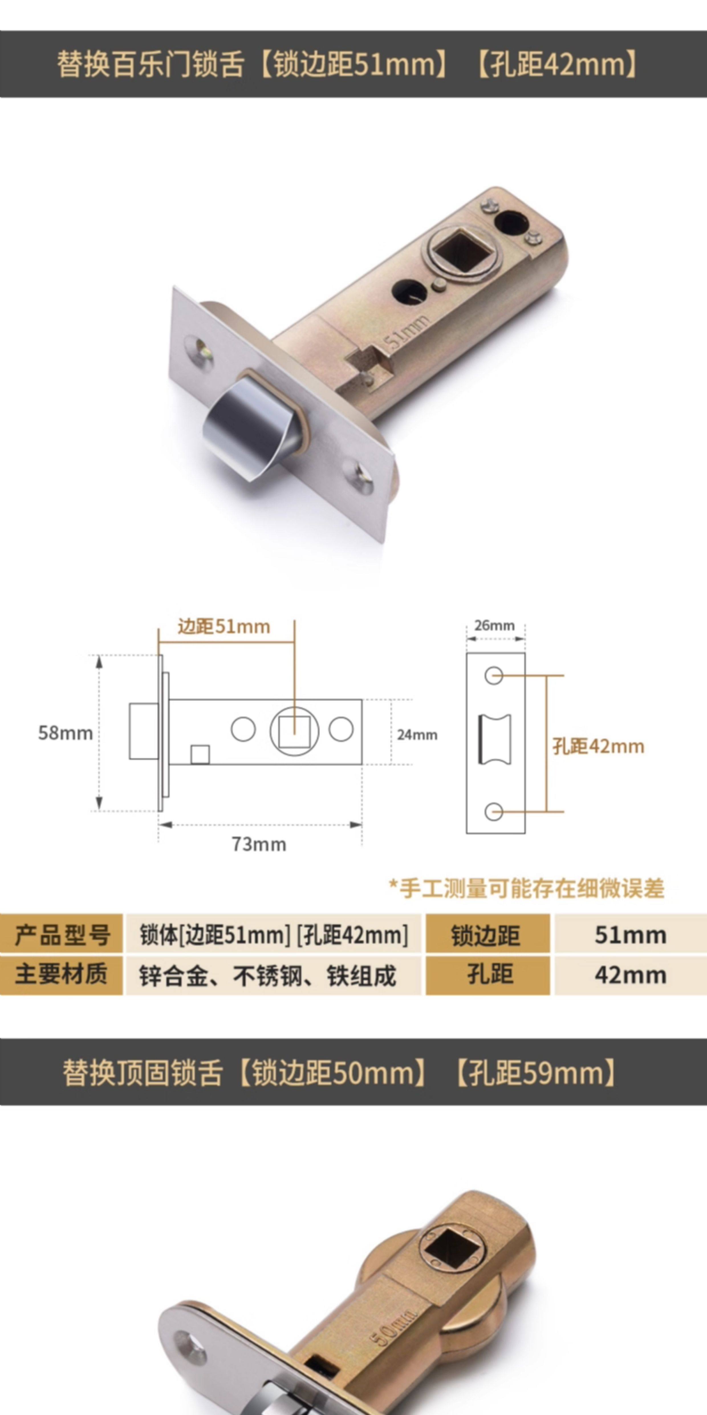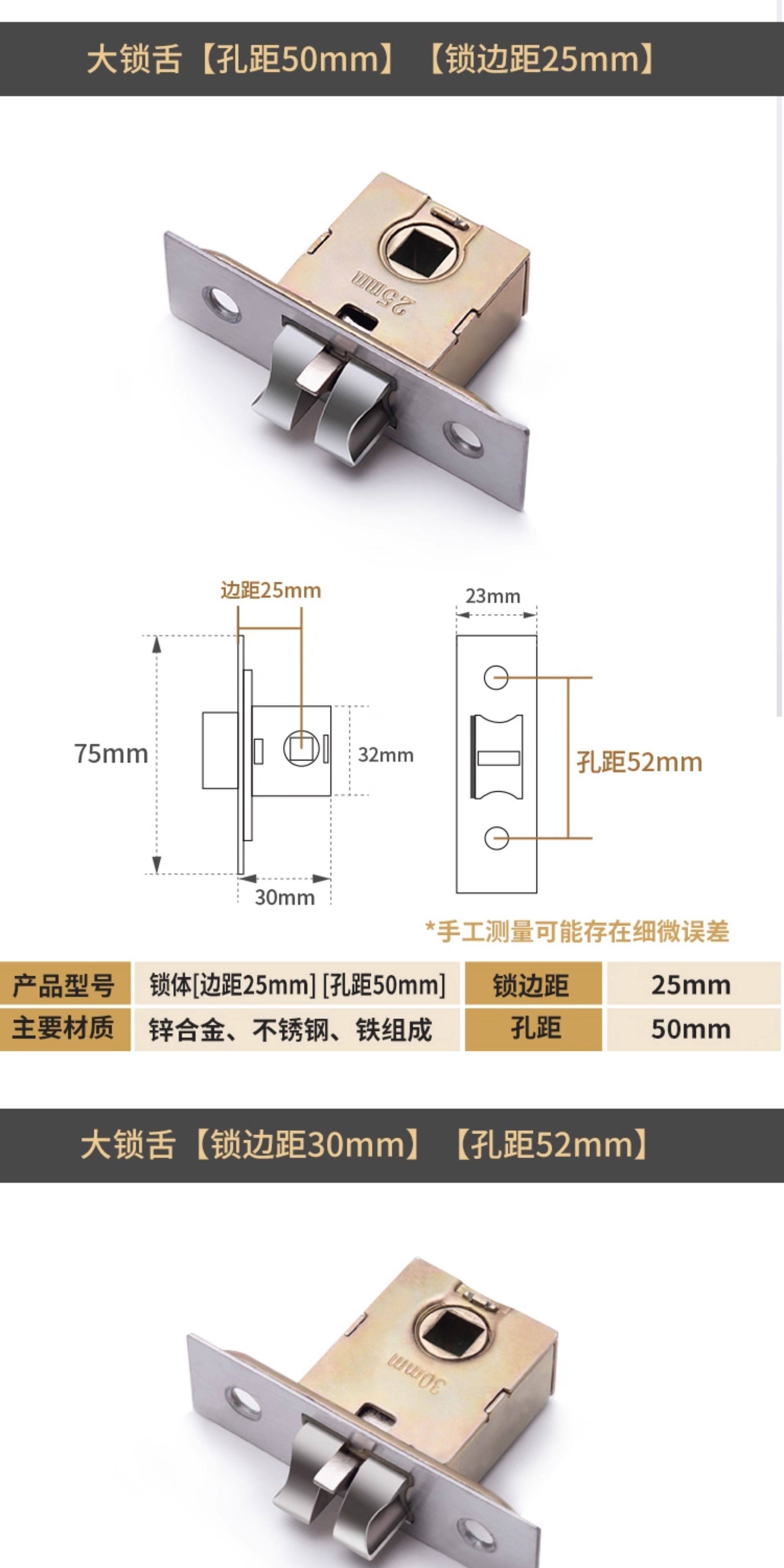 国产通用 卫生间锁芯 静音防撬 锁边距50MM 1个