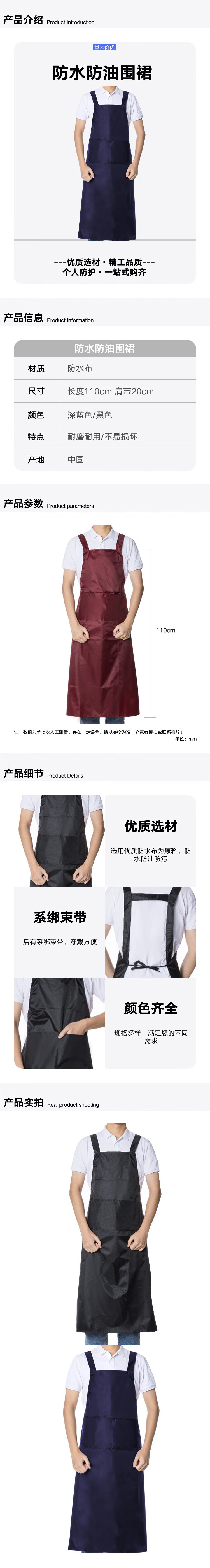 冰禹 劳保围裙 BYlf-518 110*20cm PU 深蓝色 1件