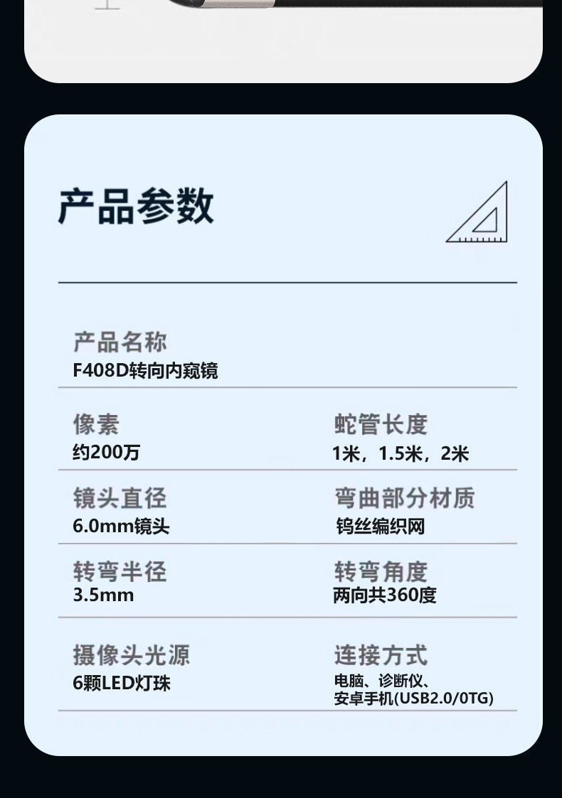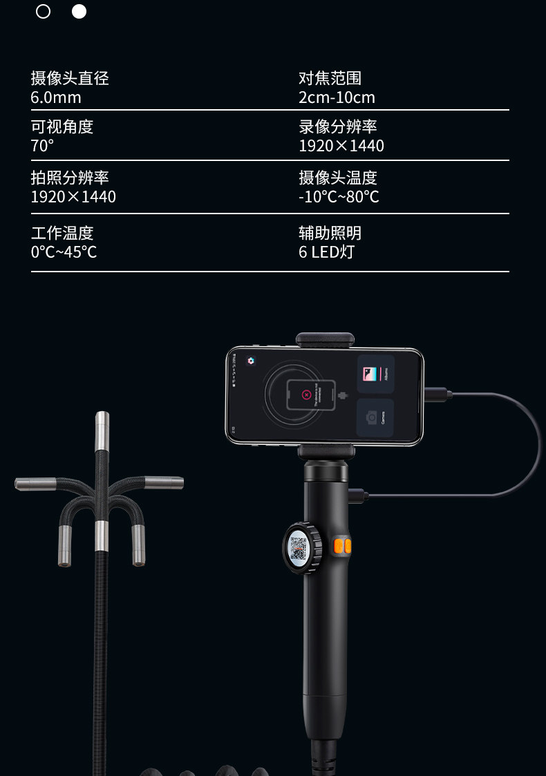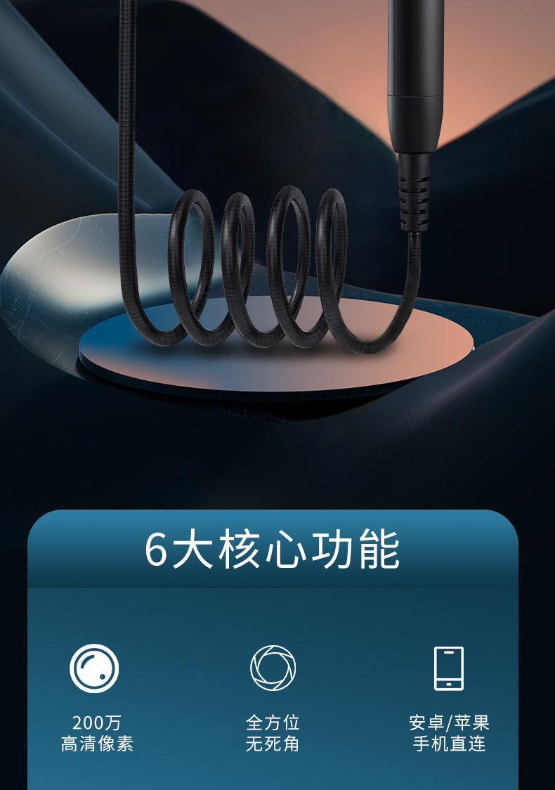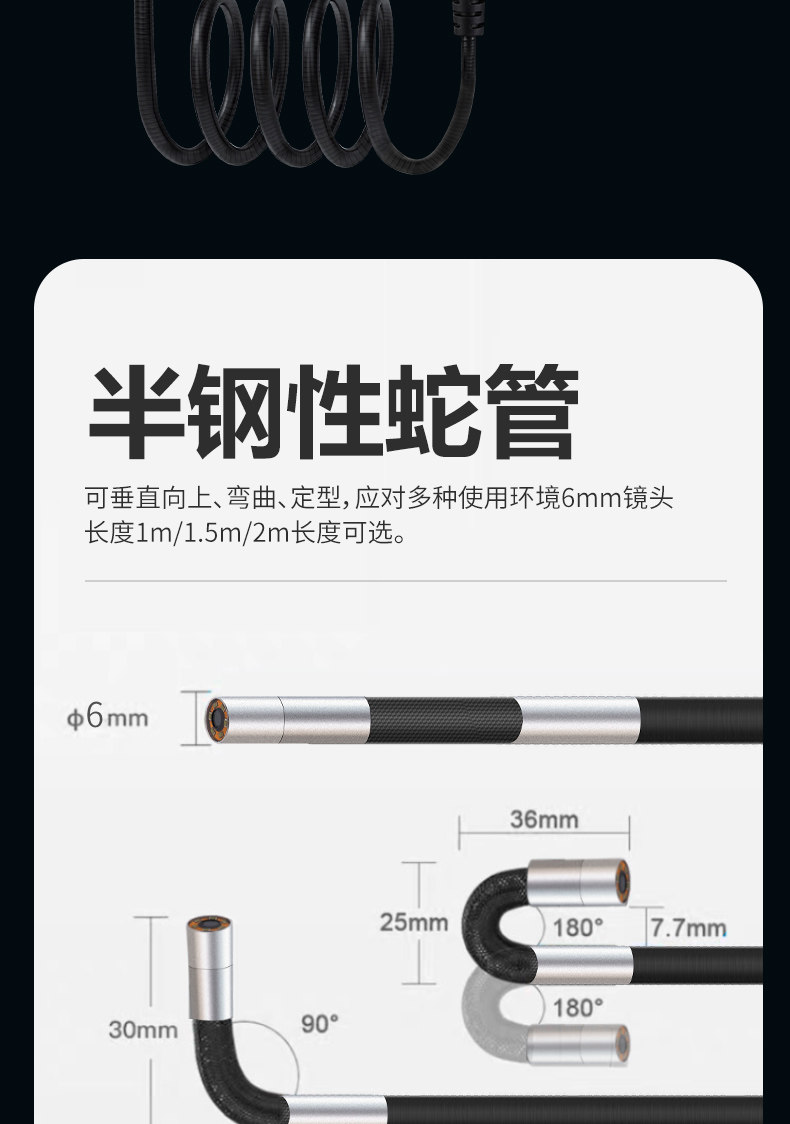 CAKI 汽修内窥镜 【屏幕款6mm】2米硬线-极清 1个