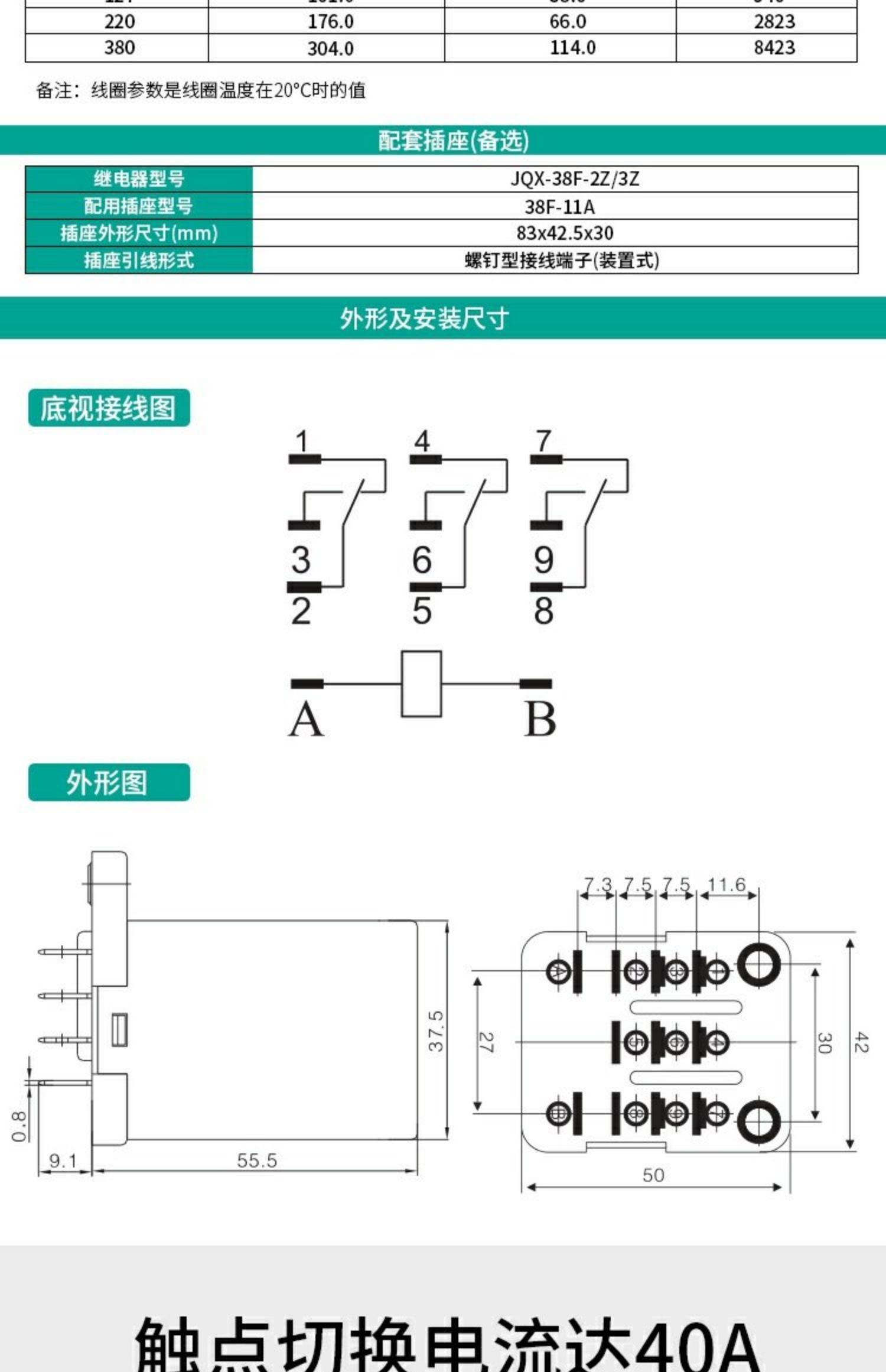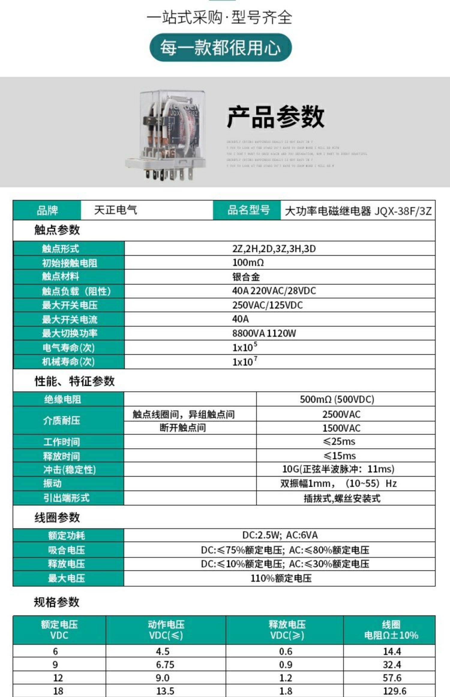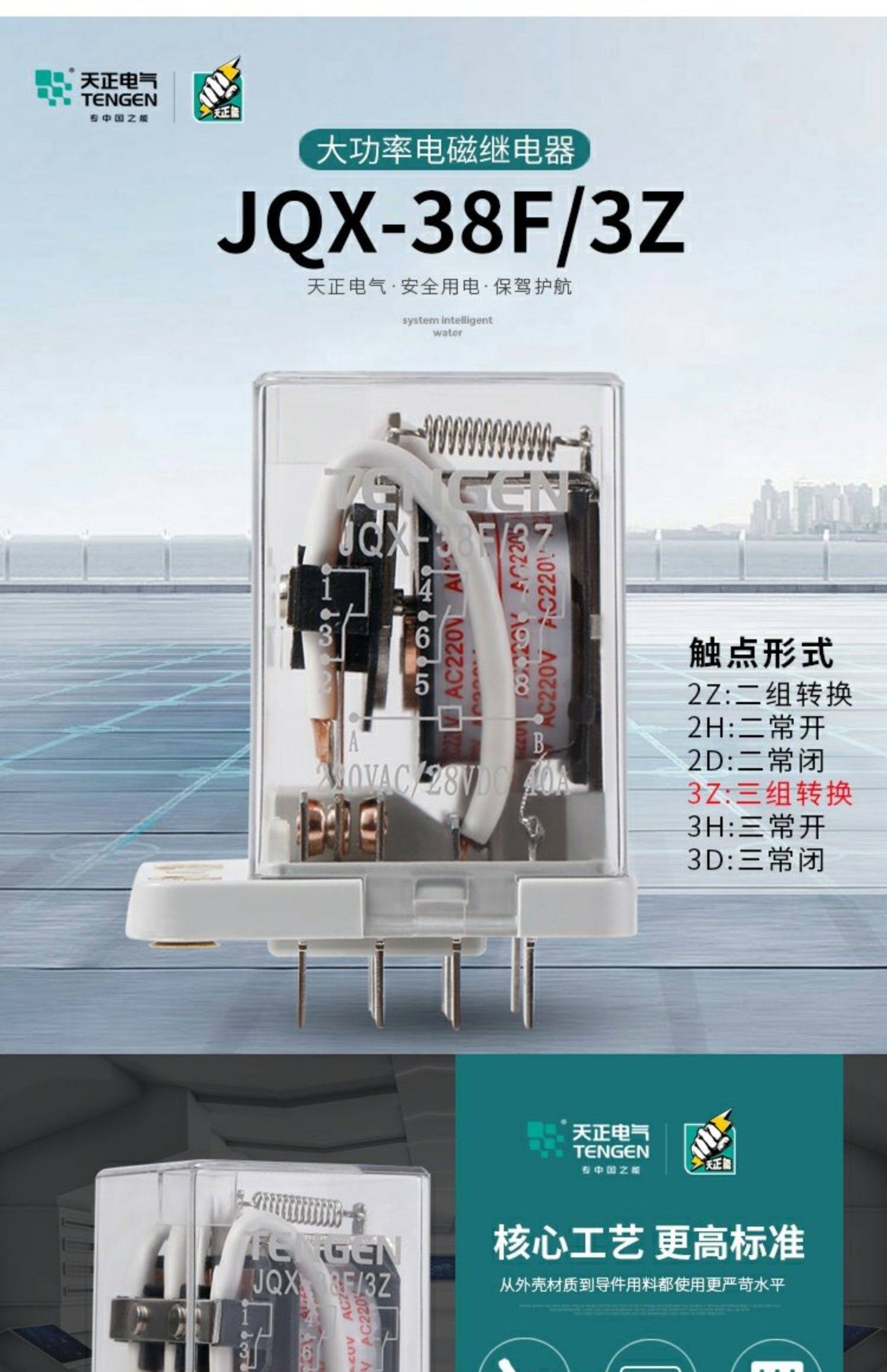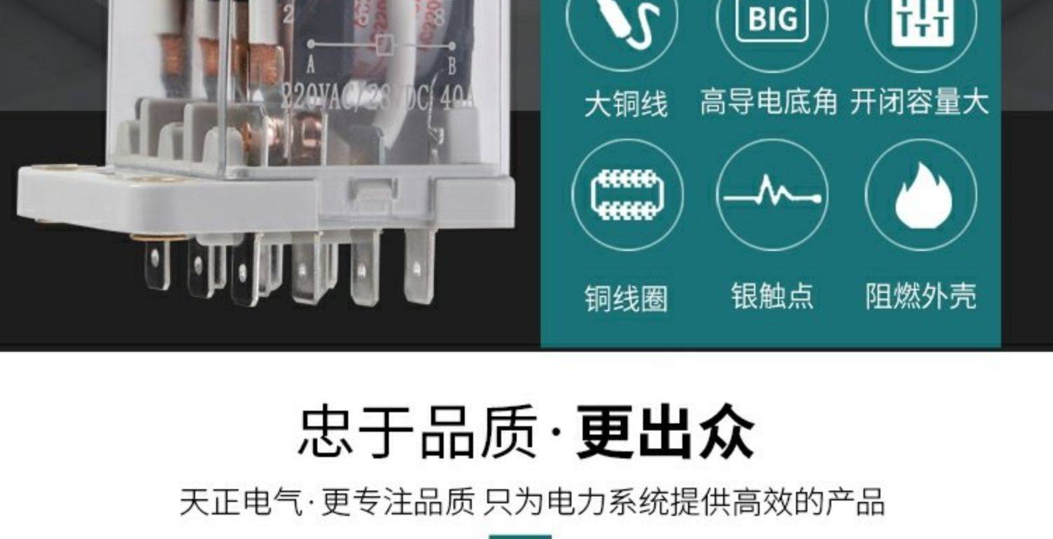 天正电气 小型电磁继电器 JQX-38F DC24V+配件底座38F-11A 1套