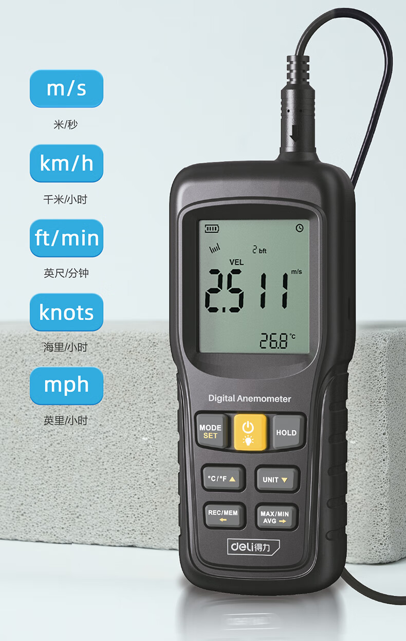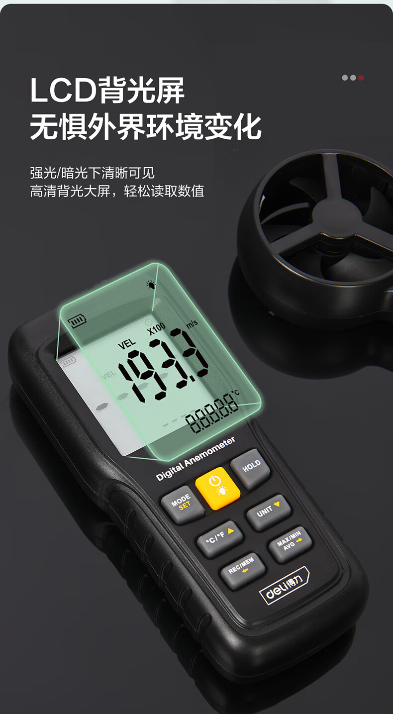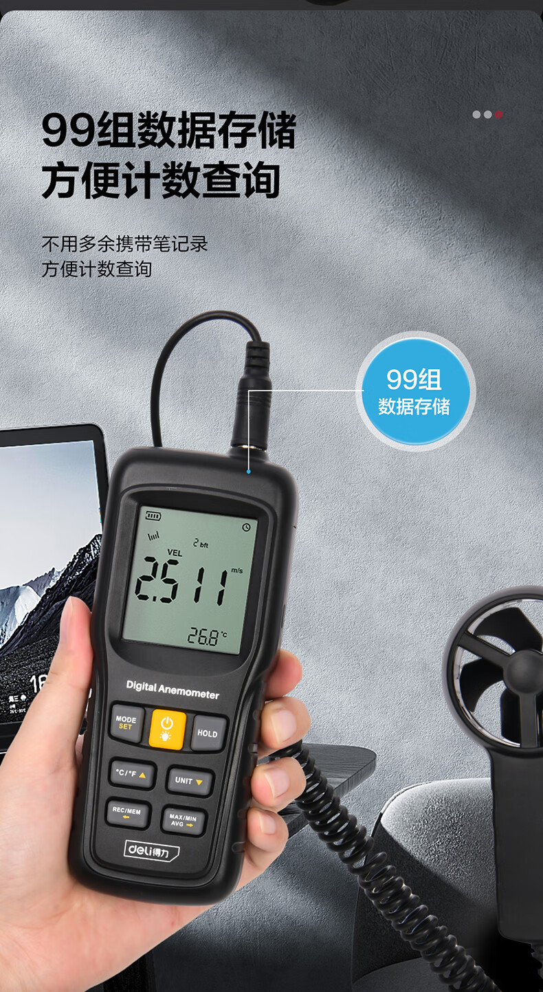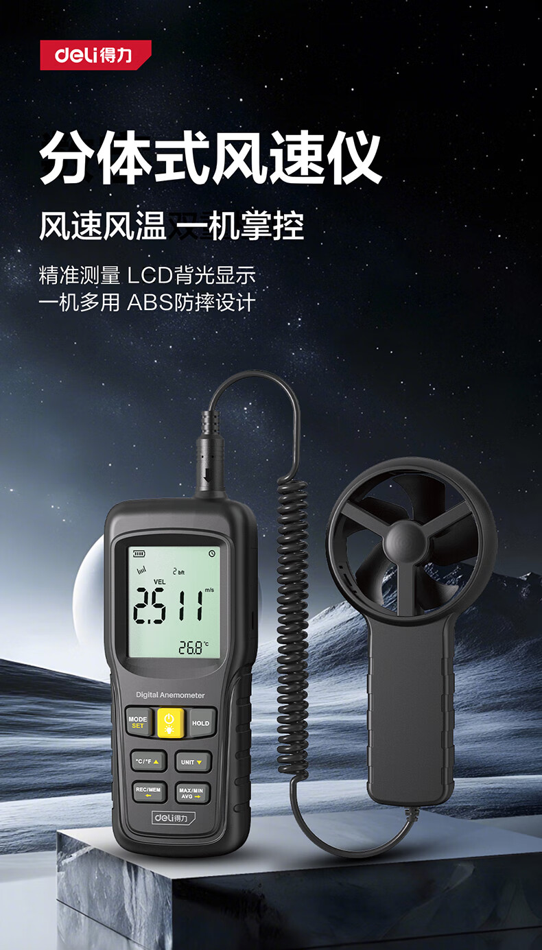 得力 分体式风速仪 DL333219 0~45m/s 黑色 1台