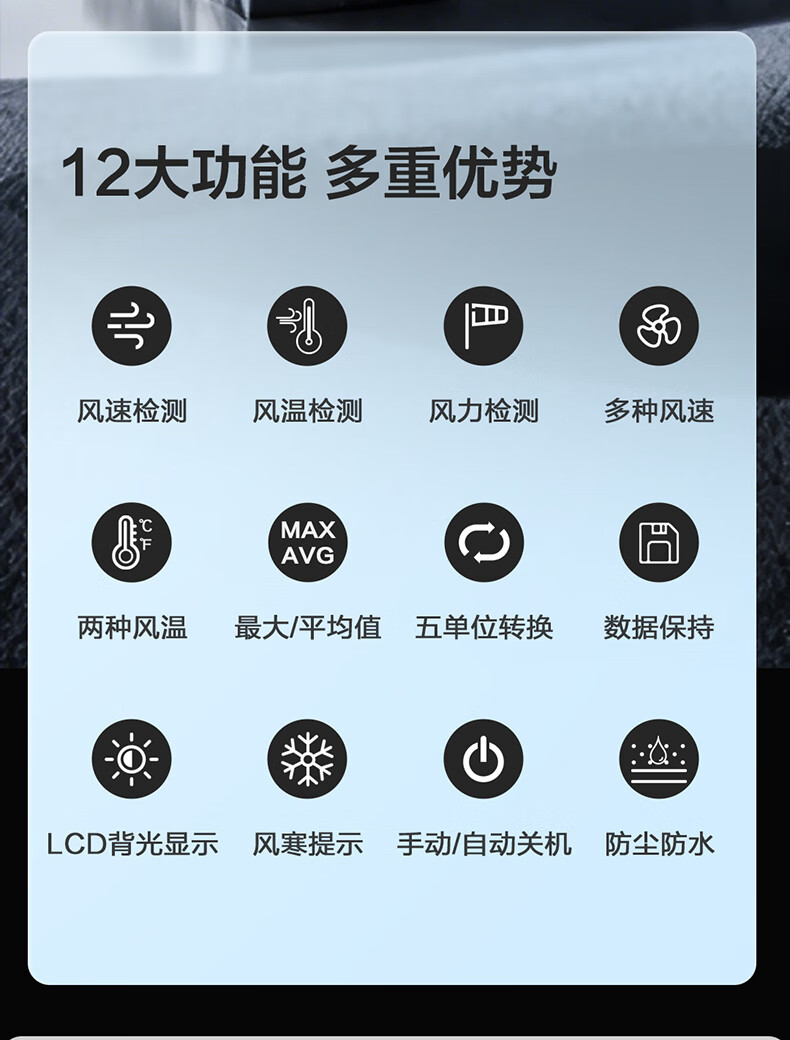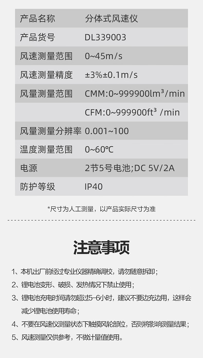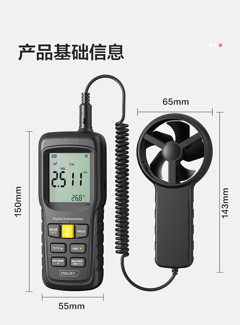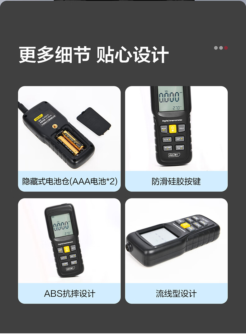 得力 分体式风速仪 DL333219 0~45m/s 黑色 1台