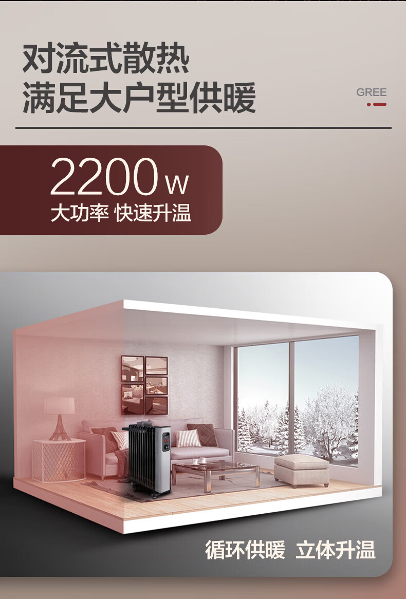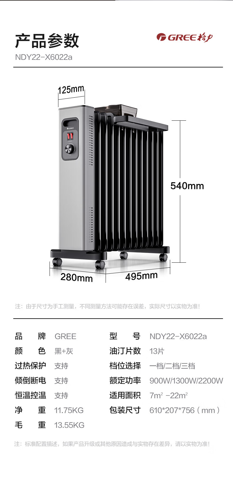 格力 电油汀取暖器 NDY22-X6022a 2200W 13片 1台