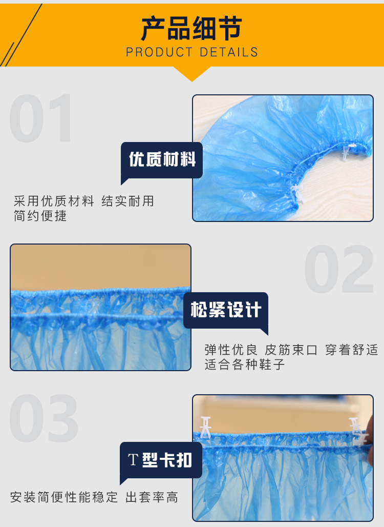 金诗洛 一次性加厚耐磨鞋套 KSL18 T型卡扣 100只 1包