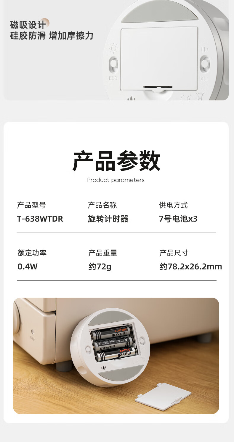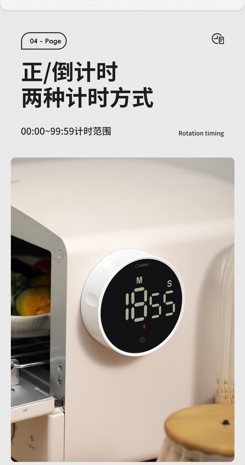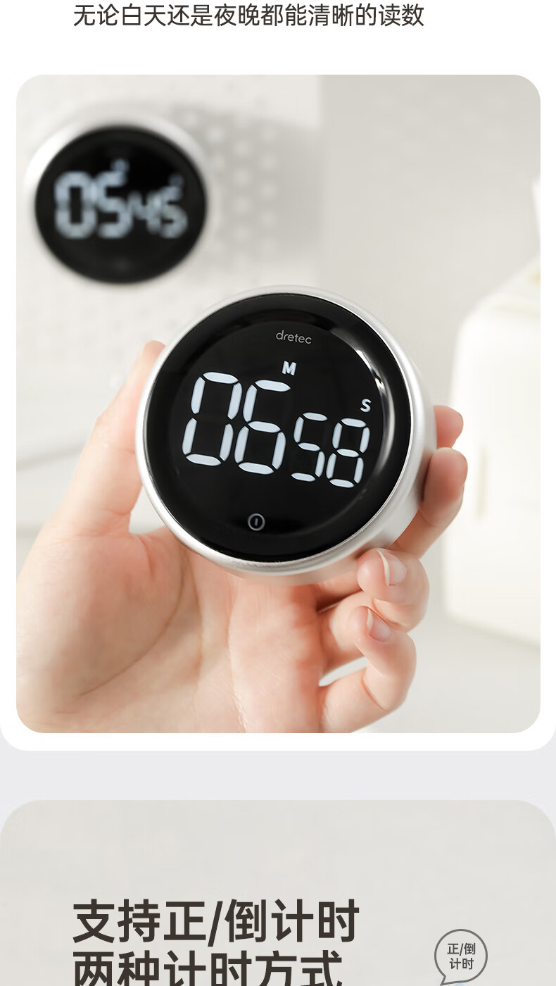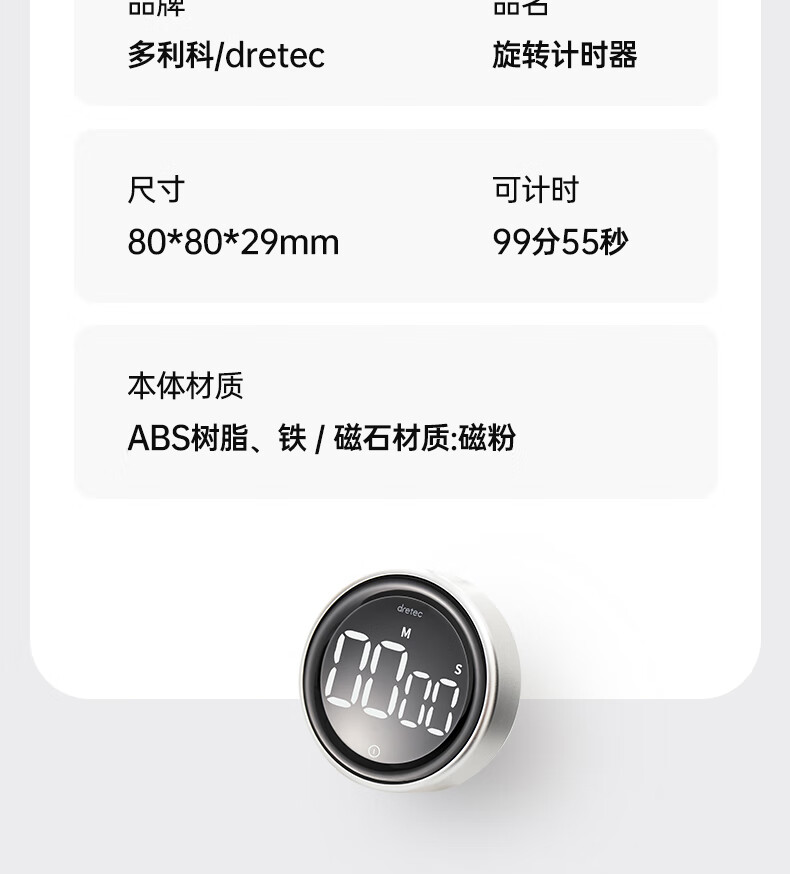 多利科 家用旋转计时器 T-638 0.4W 78.2×26.2mm 正/倒计时 磁吸 1个