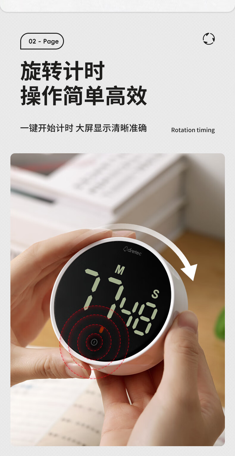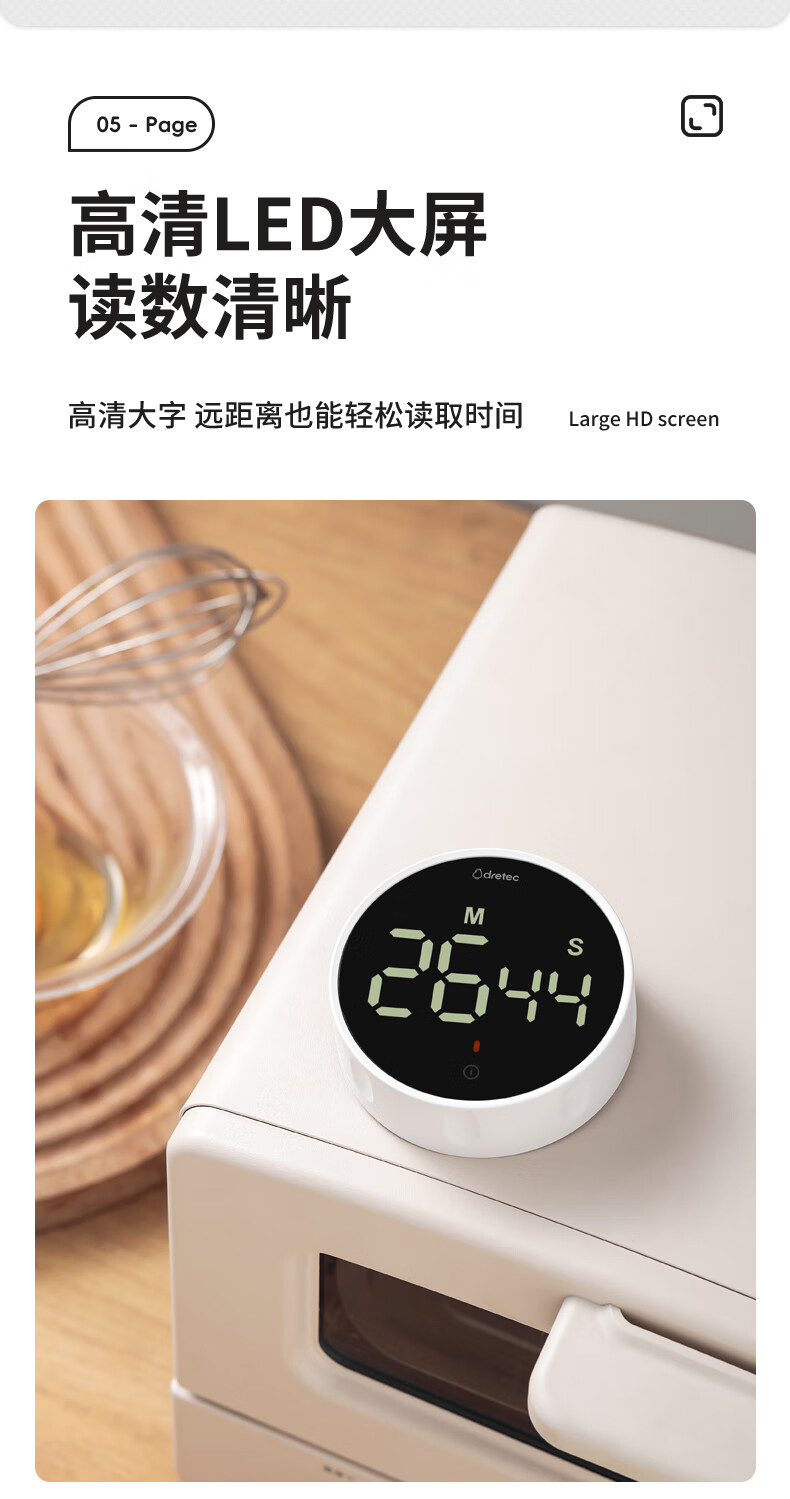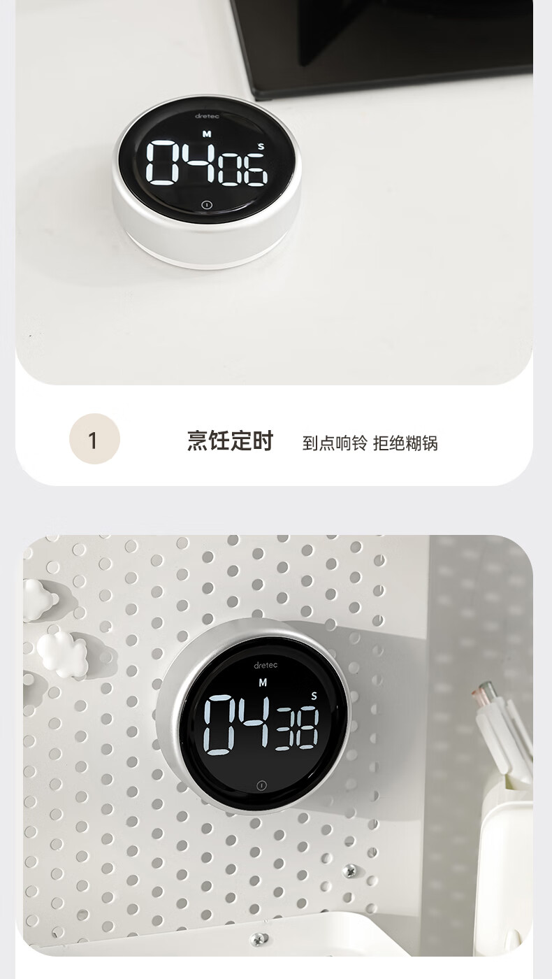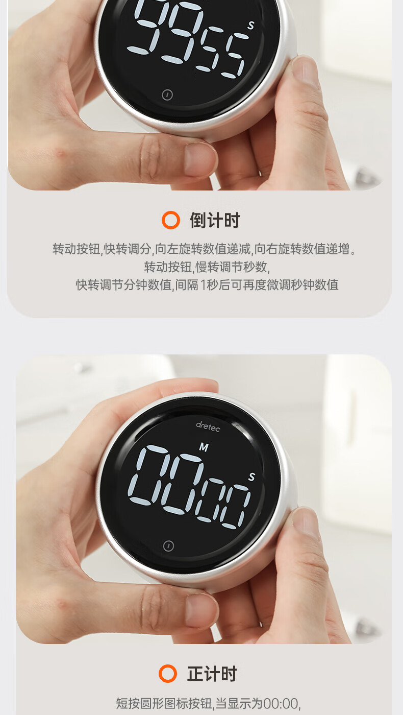 多利科 家用旋转计时器 T-638 0.4W 78.2×26.2mm 正/倒计时 磁吸 1个