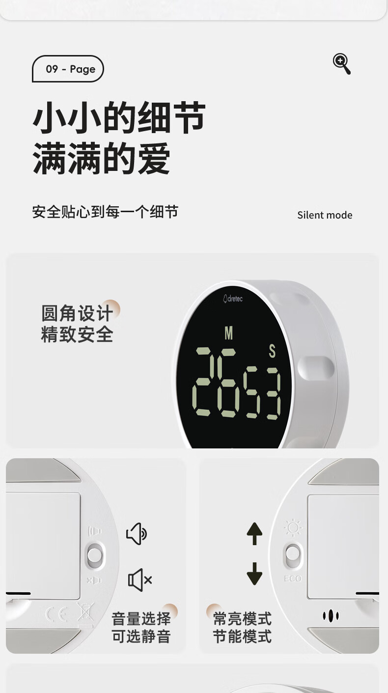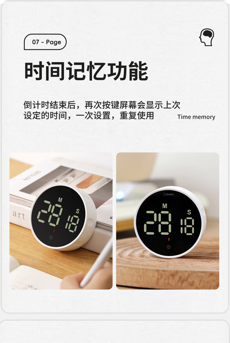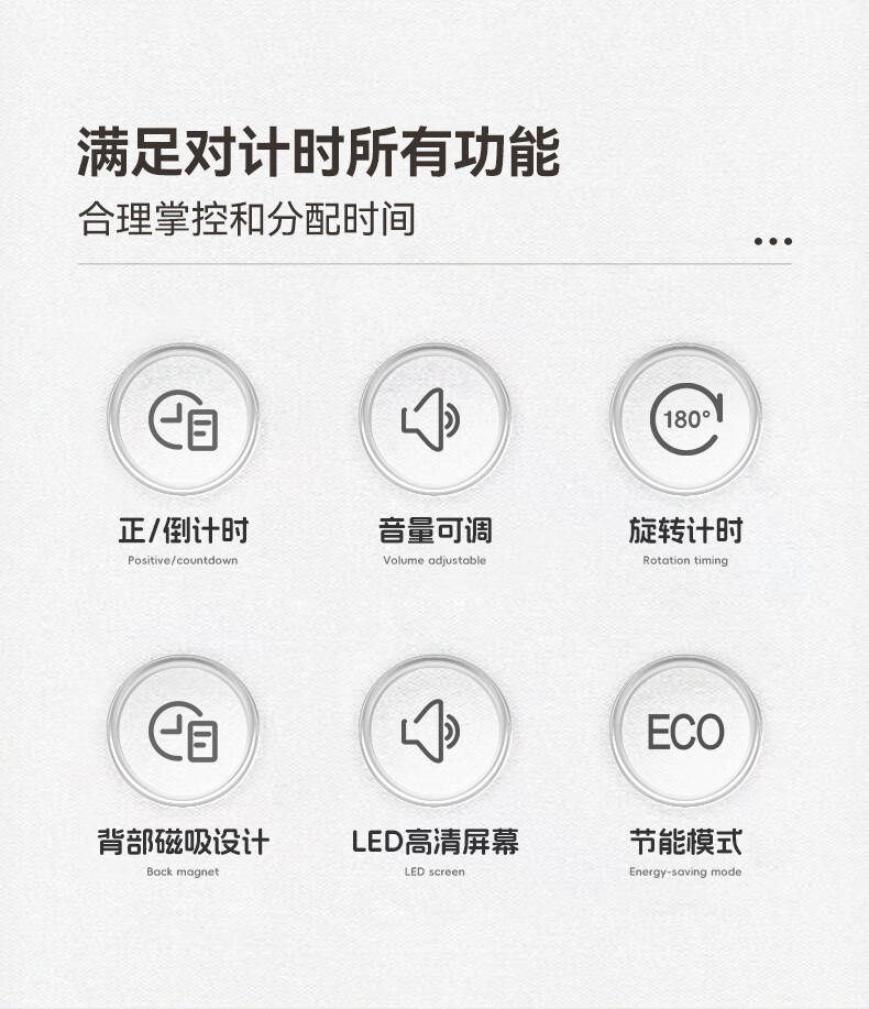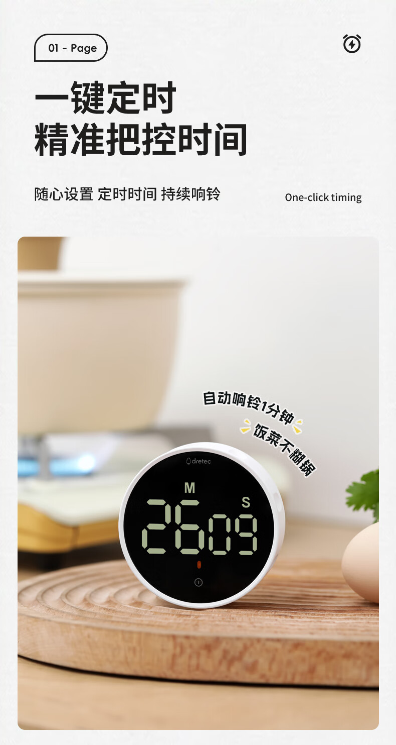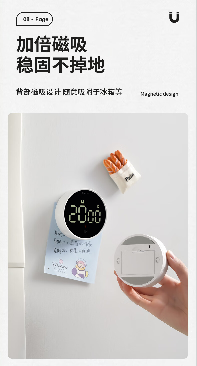 多利科 家用旋转计时器 T-638 0.4W 78.2×26.2mm 正/倒计时 磁吸 1个