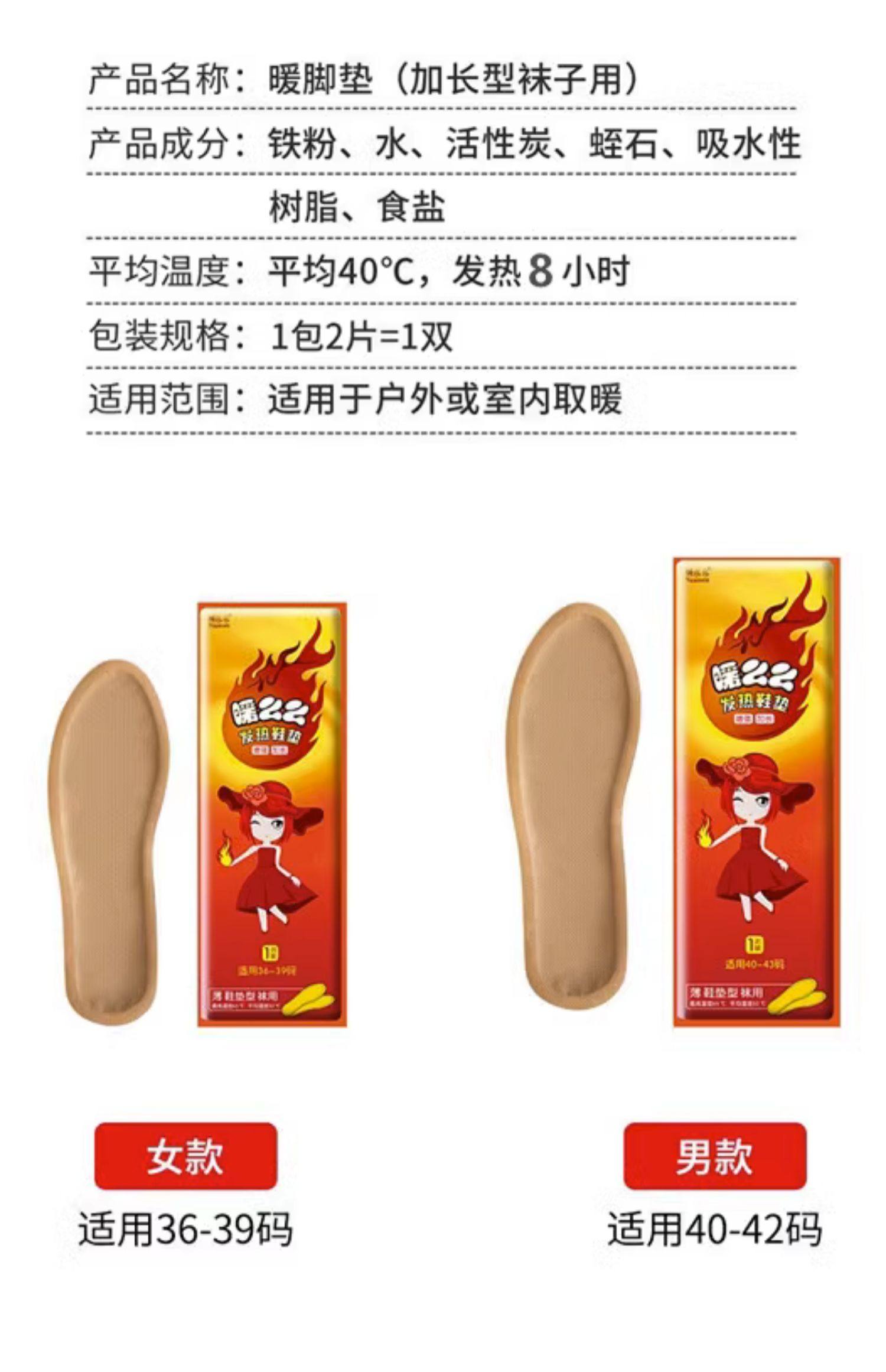 暖么么 发热鞋垫 男款 适用(40-43码) 10双 1包