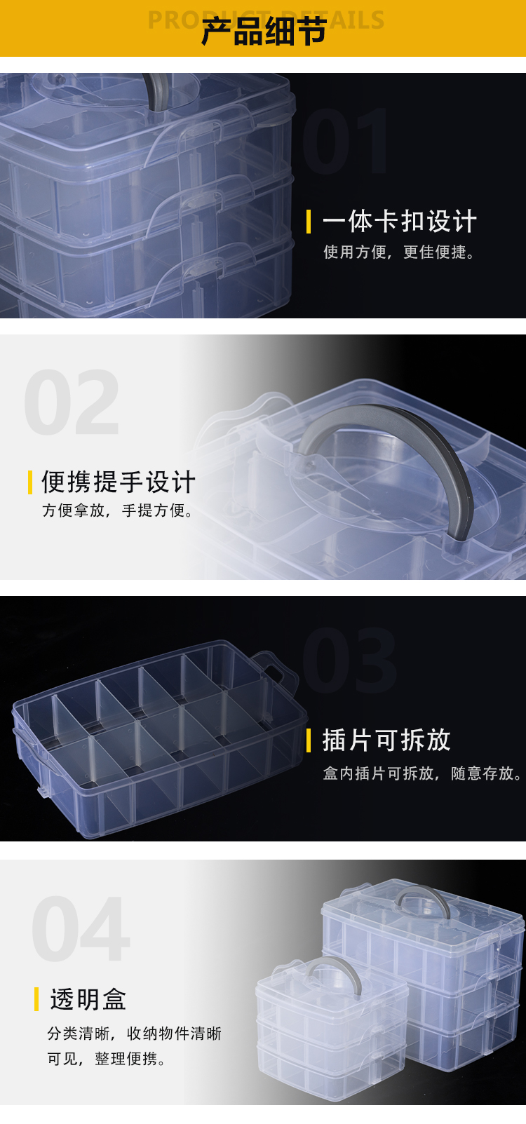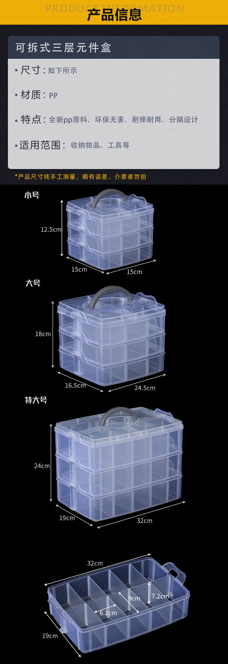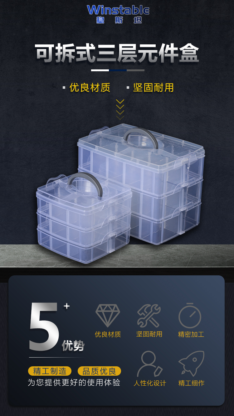 稳斯坦 三层多功能收纳盒 W5338 大号(24.5*16.5*18cm) 1个