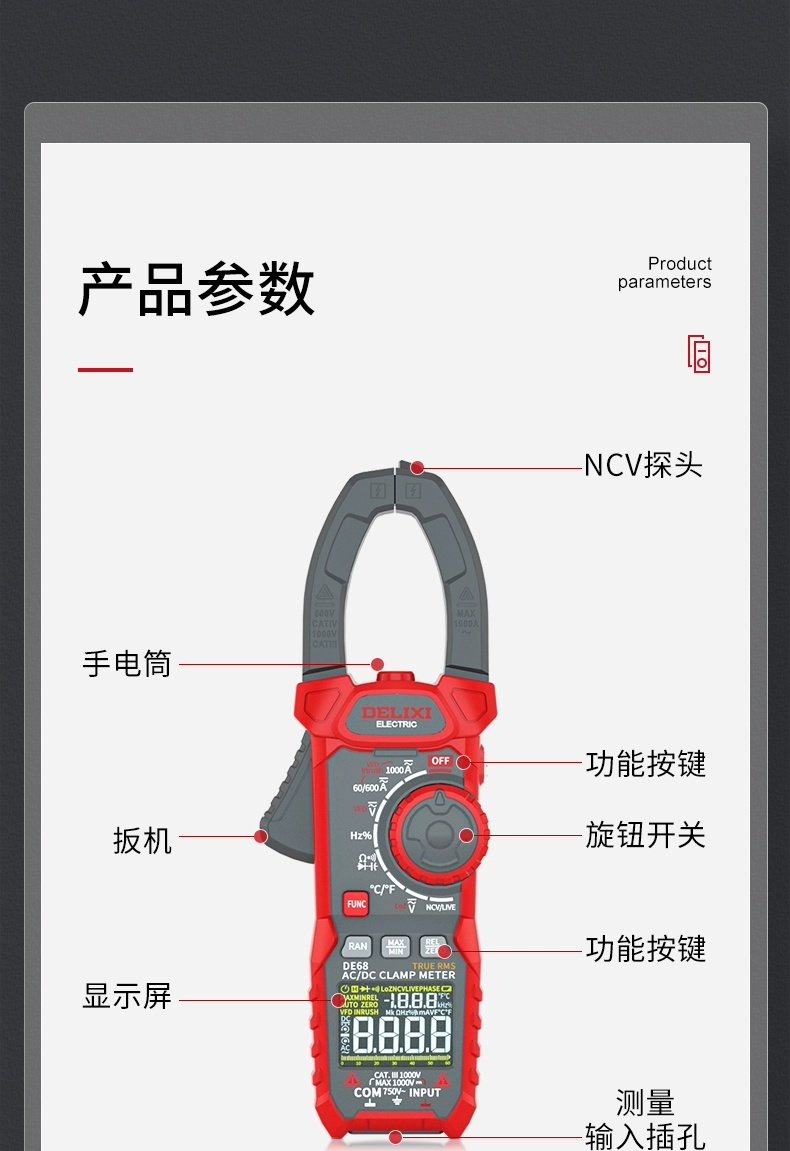 德力西电气 多功能数字钳形表 DE68 DE68交直流NCV 1个