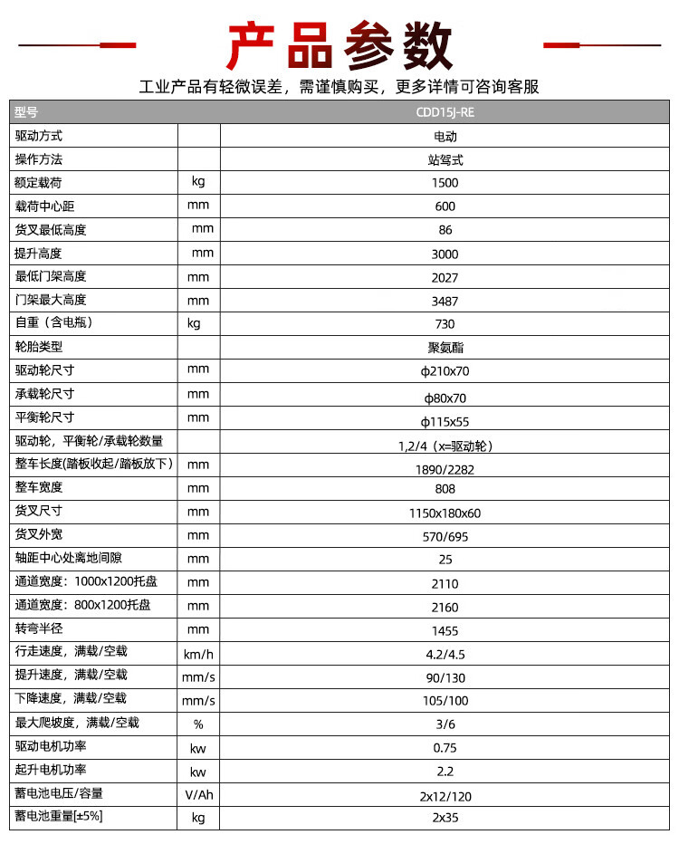 合力 全电动堆高车 CDD15J-RE 站驾式 1.5吨升高3米 1辆