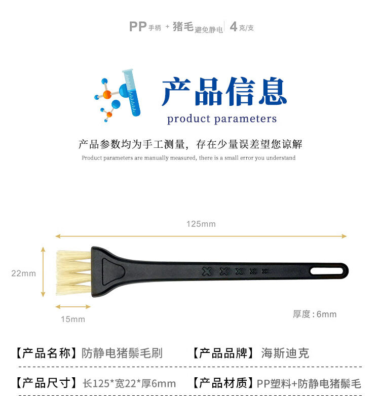 海斯迪克 防静电毛刷 KY81-1 PP刷柄+PA刷毛 小号(长170mm) 1把